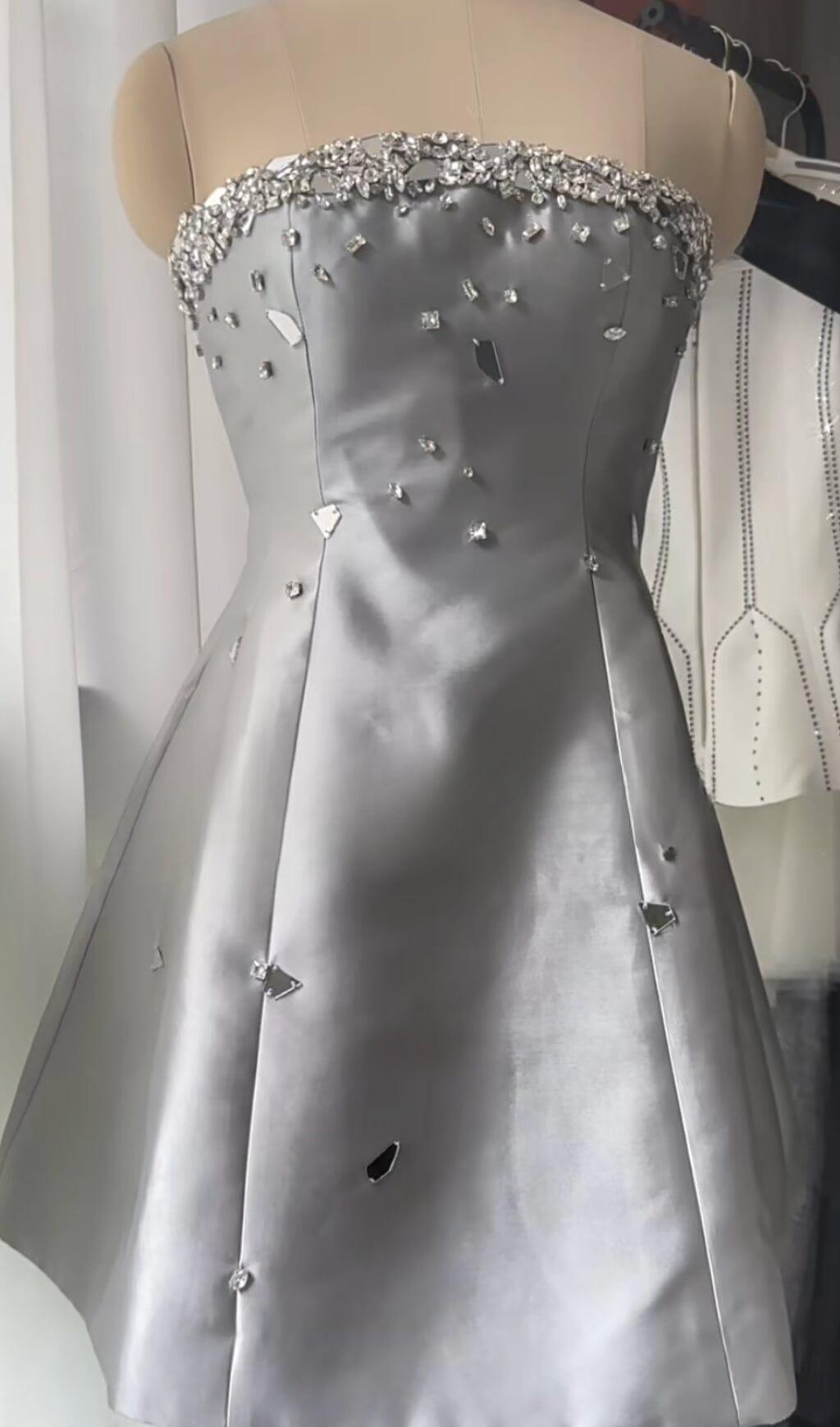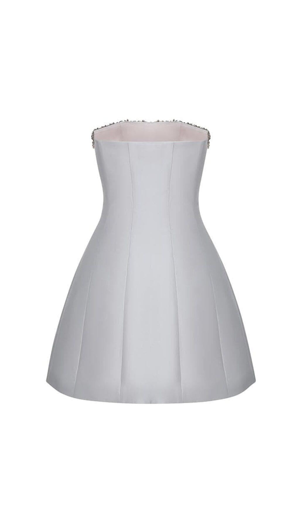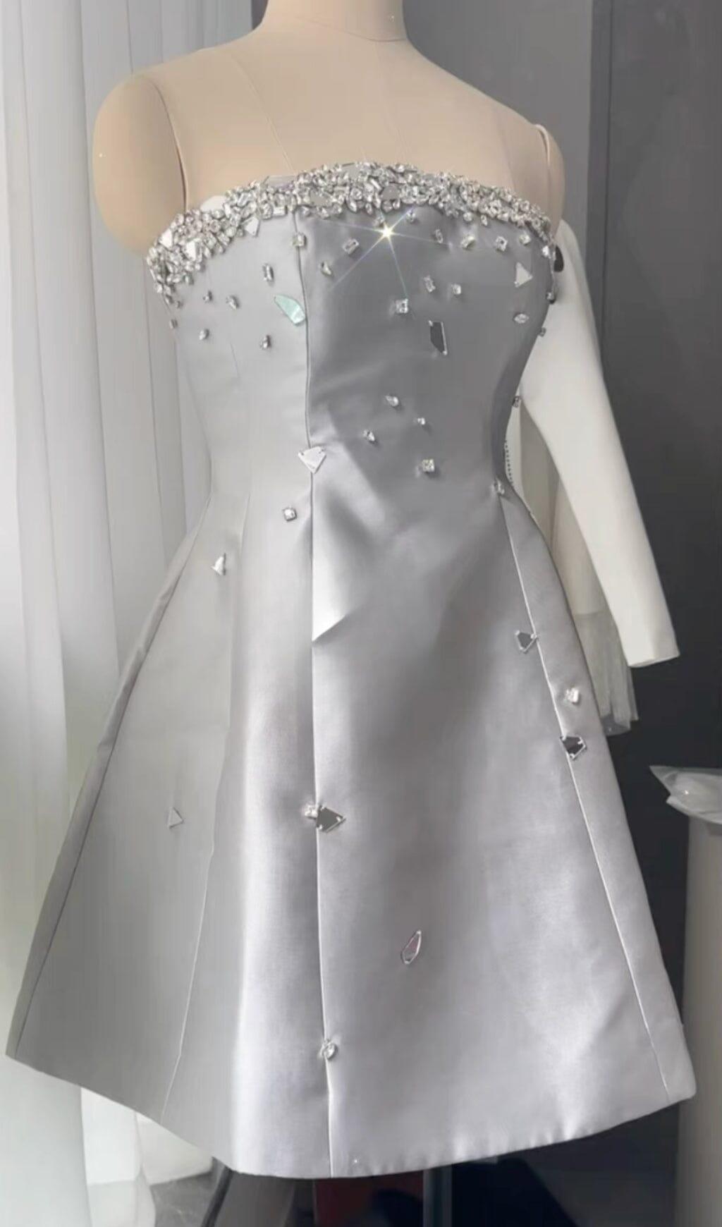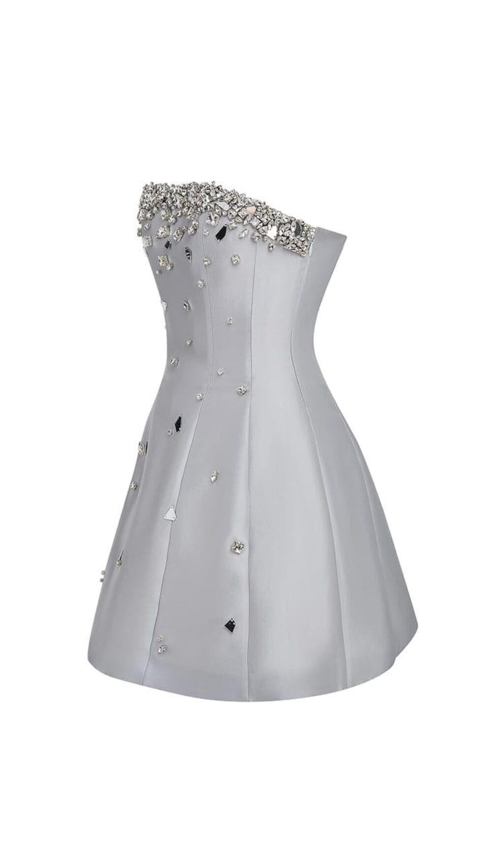 GREY CRYSTAL-EMBELLISHED STRAPLESS MINI DRESS
