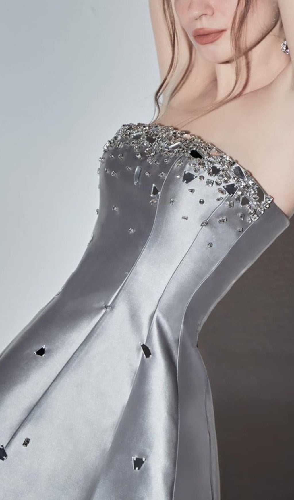 AMITA GREY CRYSTAL MINI DRESS