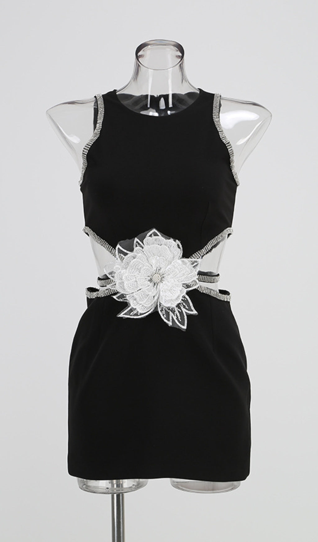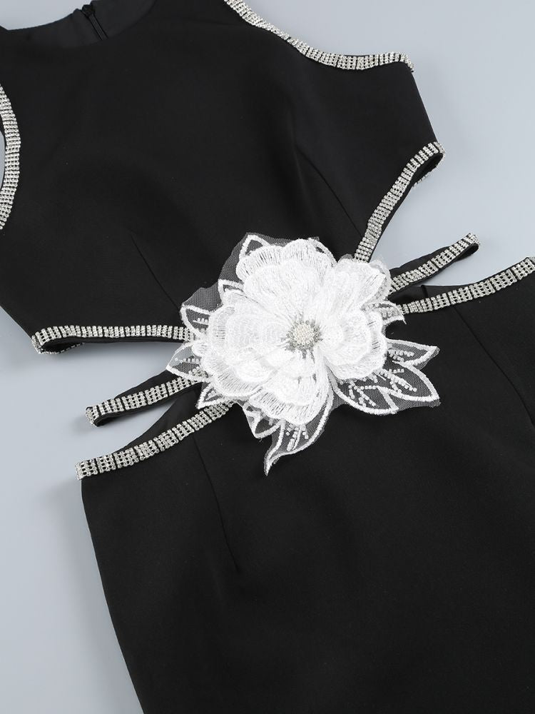 Adorned with intricate crystal floral embellishments, this mini dress exudes sophistication and luxury. Perfect for any special occasion, it is sure to make you stand out in a crowd. Elevate your style and be the center of attention with this exclusive piece.