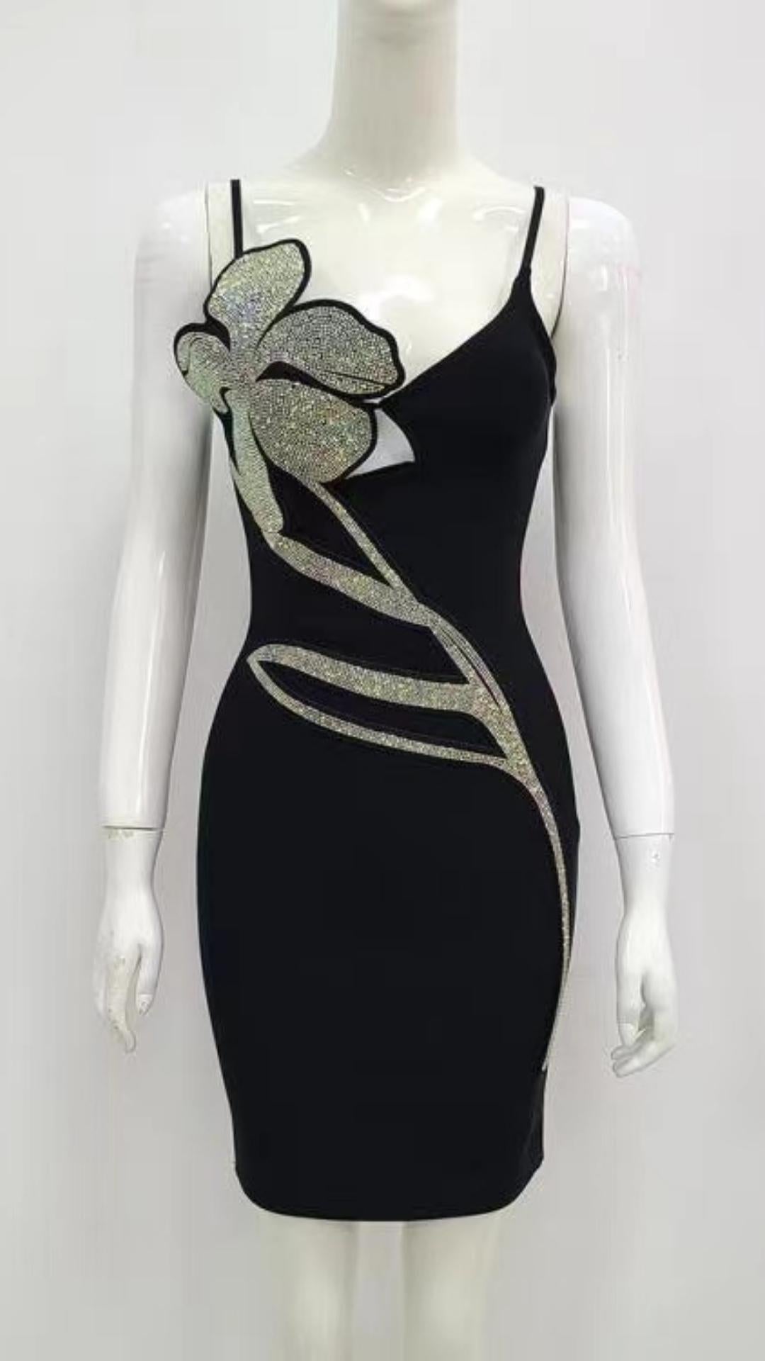 Set yourself apart from the crowd with our Crystal Flower Bandage Mini Dress. This dress is perfect for any occasion, whether it's a romantic dinner date, a night out with the girls, or a party night. The dress features stunning crystal flower details that add an elegant and feminine touch. Its bandage style provides a flattering and body-hugging fit, making you feel confident and beautiful.