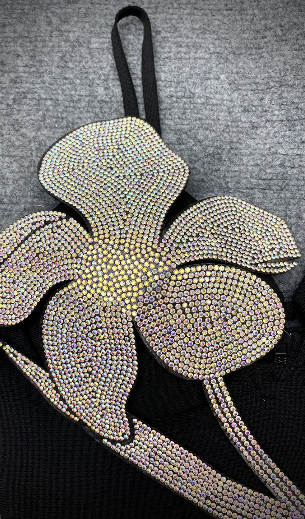 CRYSTAL FLOWER BANDAGE MINI DRESS