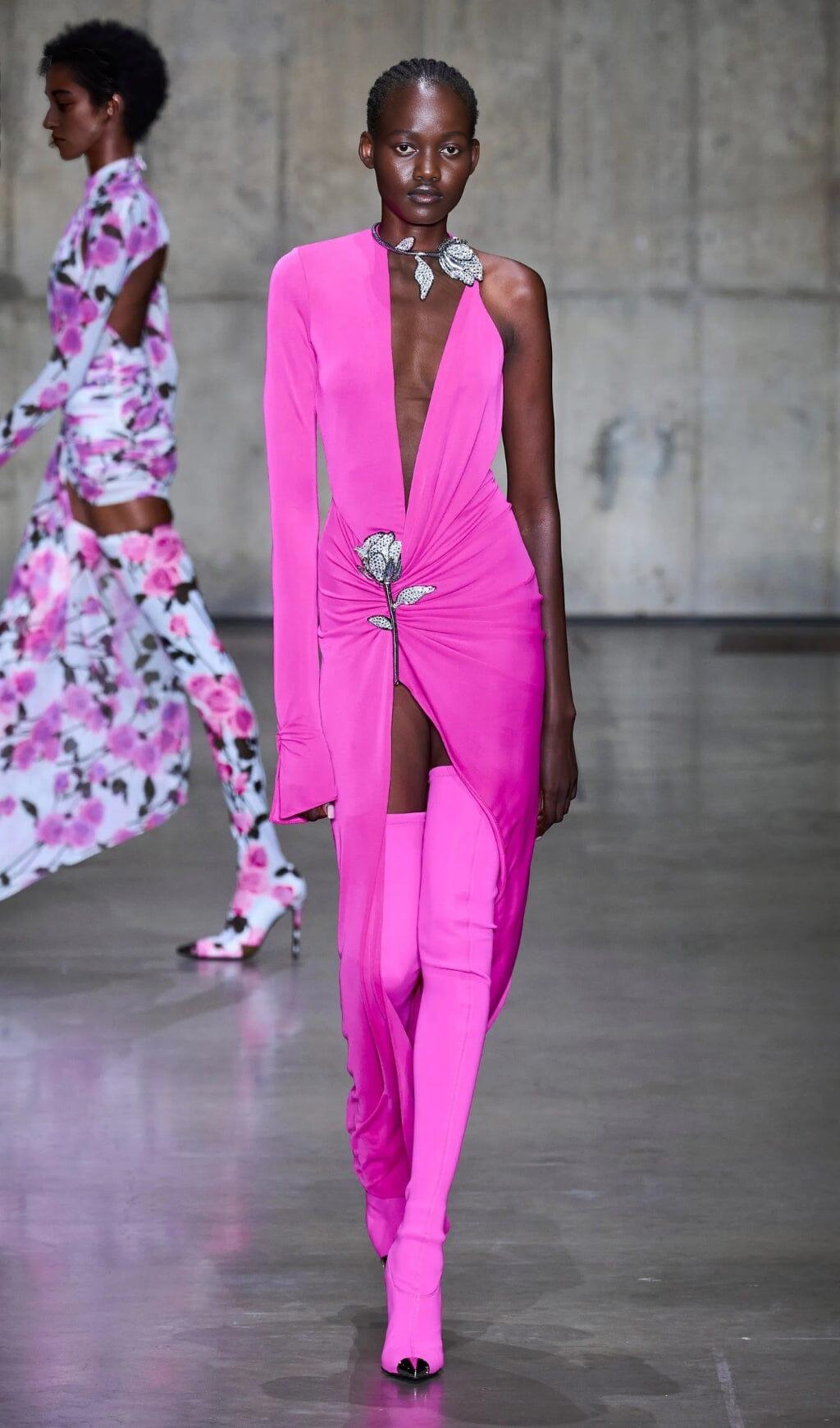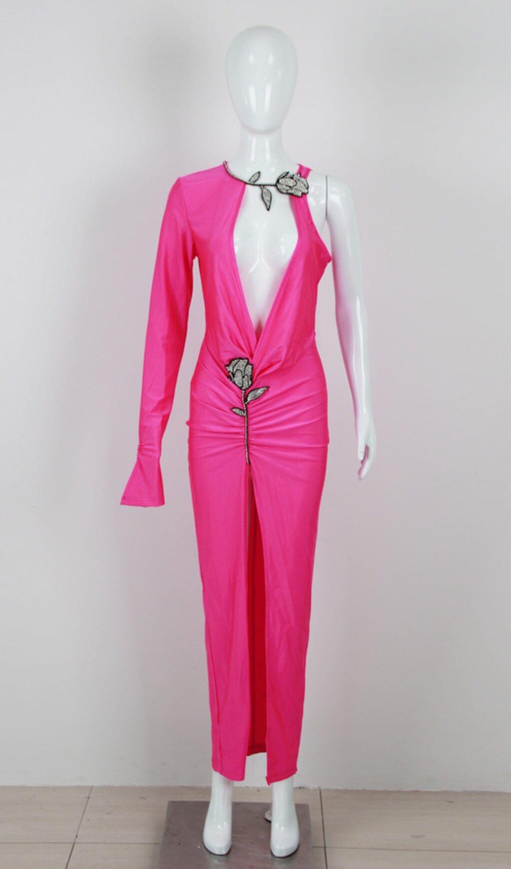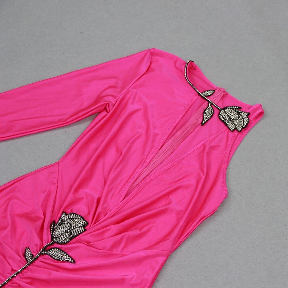CRYSTAL FLOWER CUTOUT RUCHED DRESS