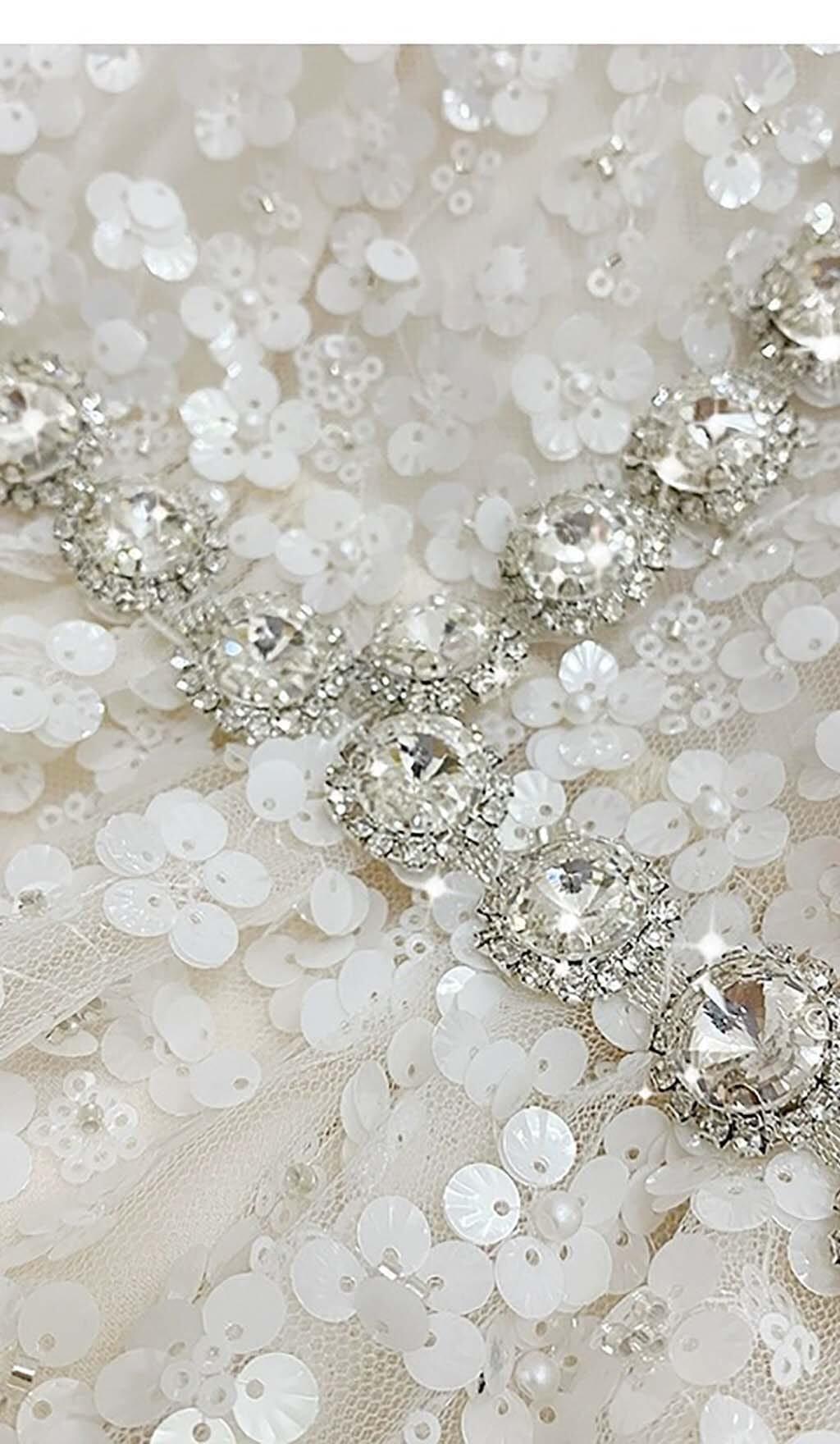 • Sparkling silver-tone crystals embellish the neckline and create a stunning V shape down the torso