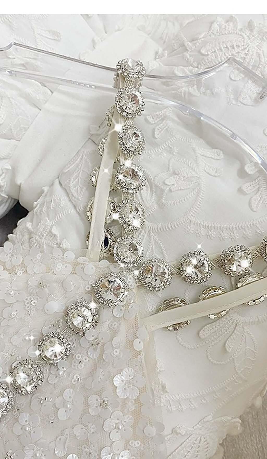 This Crystal Halter Mini Dress is made with delicate materials and should be gently dry cleaned only to preserve its quality and beauty.