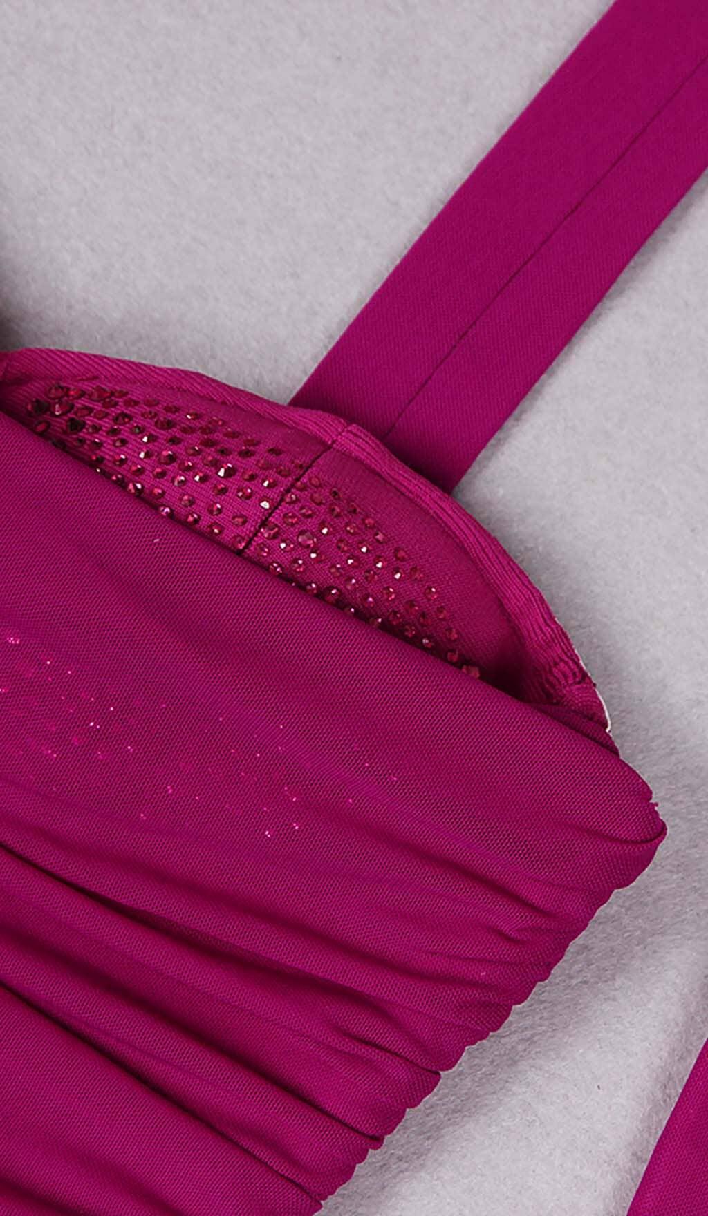 CRYSTAL HALTER NECK MIDI DRESS IN GRAPE
