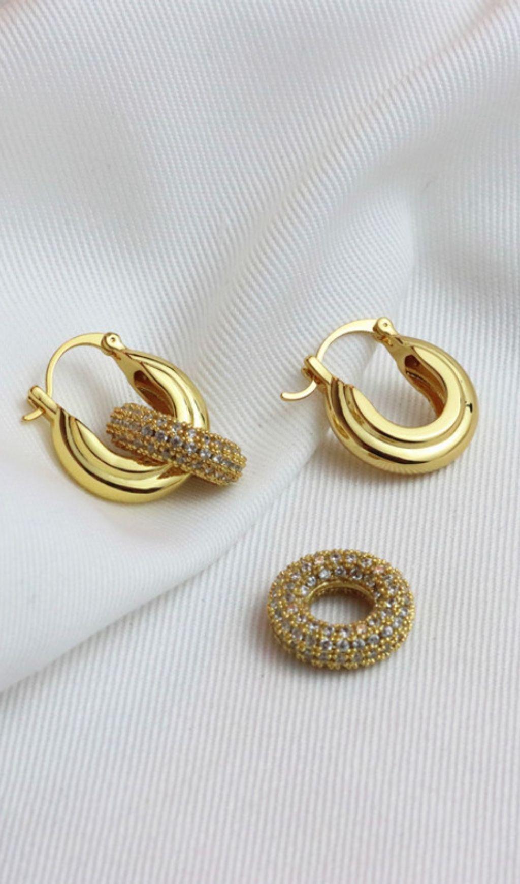 Enhance your style with our exquisite 18K Gold Crystal Hoop Earrings. These stunning earrings are designed to add a touch of elegance and glamour to any outfit.