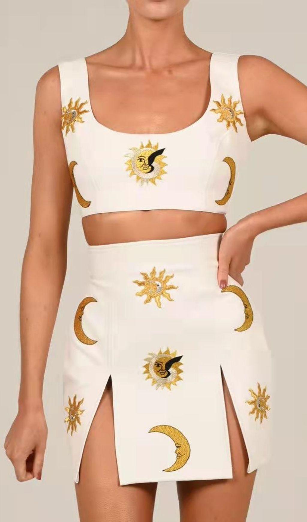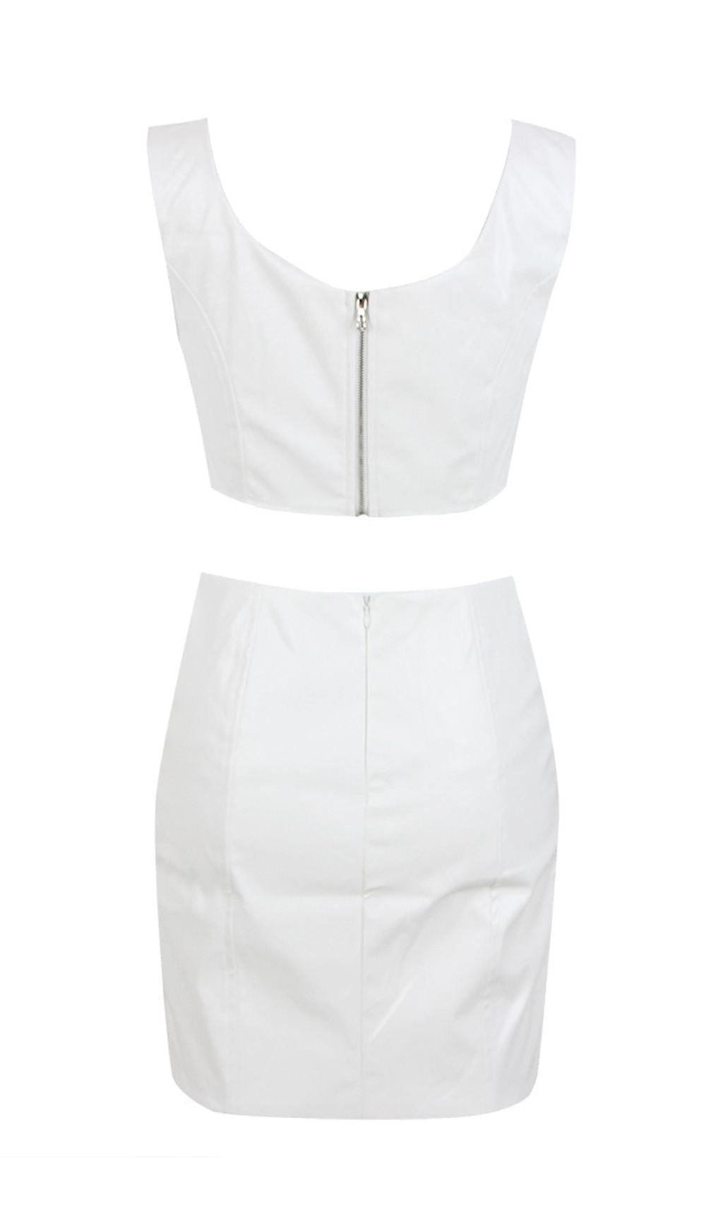 CRYSTAL LEATHER TWO PIECE SET IN WHITE