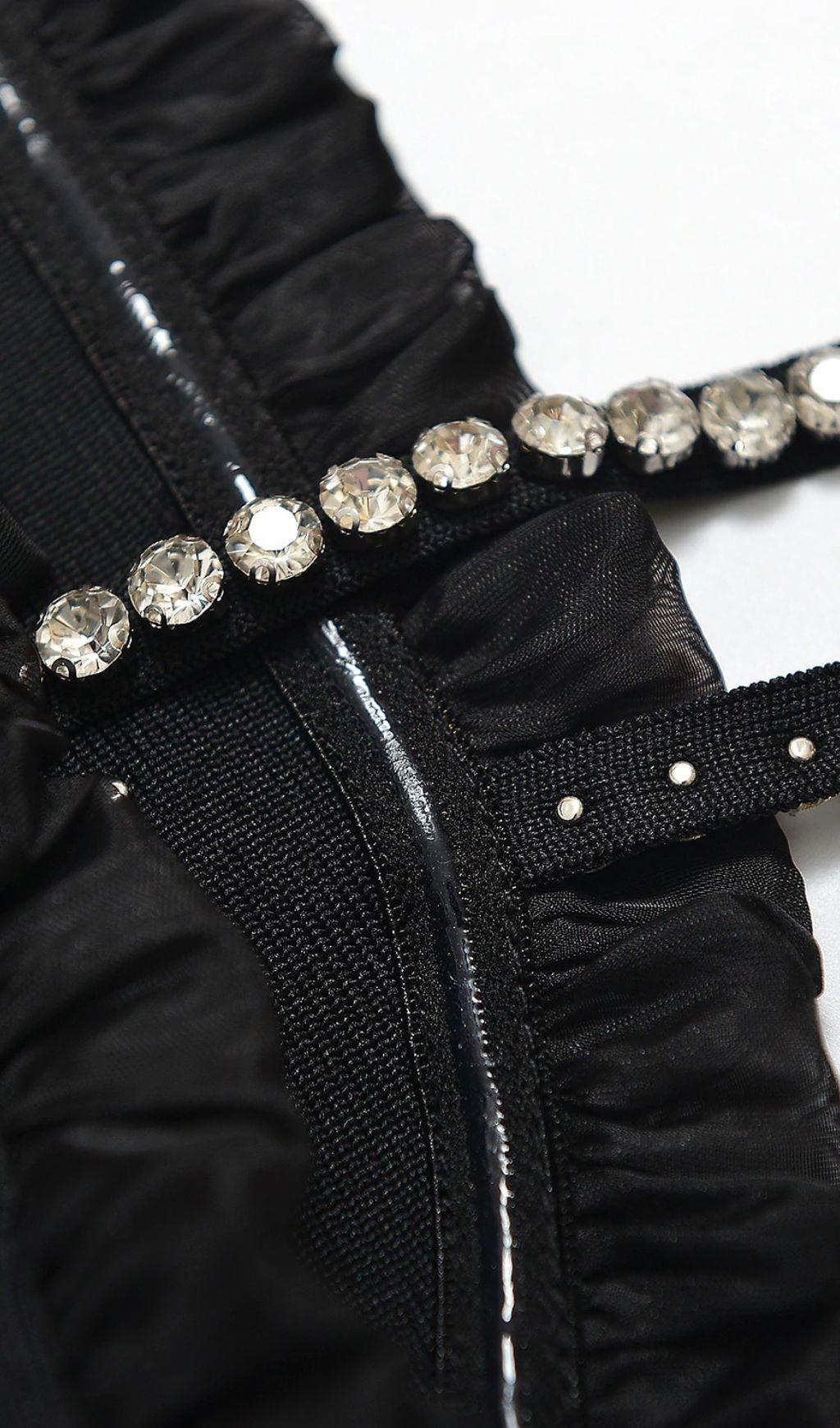 Designed with attention to detail, this dress features a stunning crystal embellishment that adds a touch of sparkle and sophistication. The black color gives it a timeless and elegant appeal, making it a wardrobe staple for any fashion-forward woman.