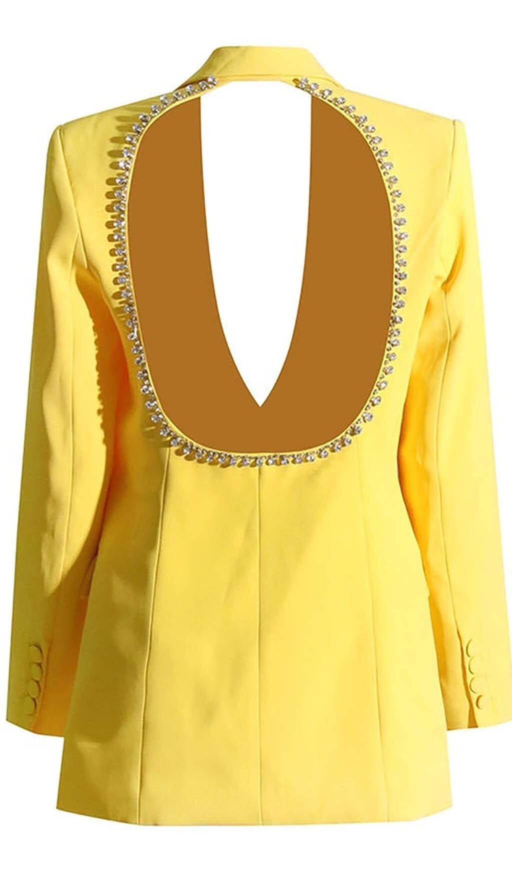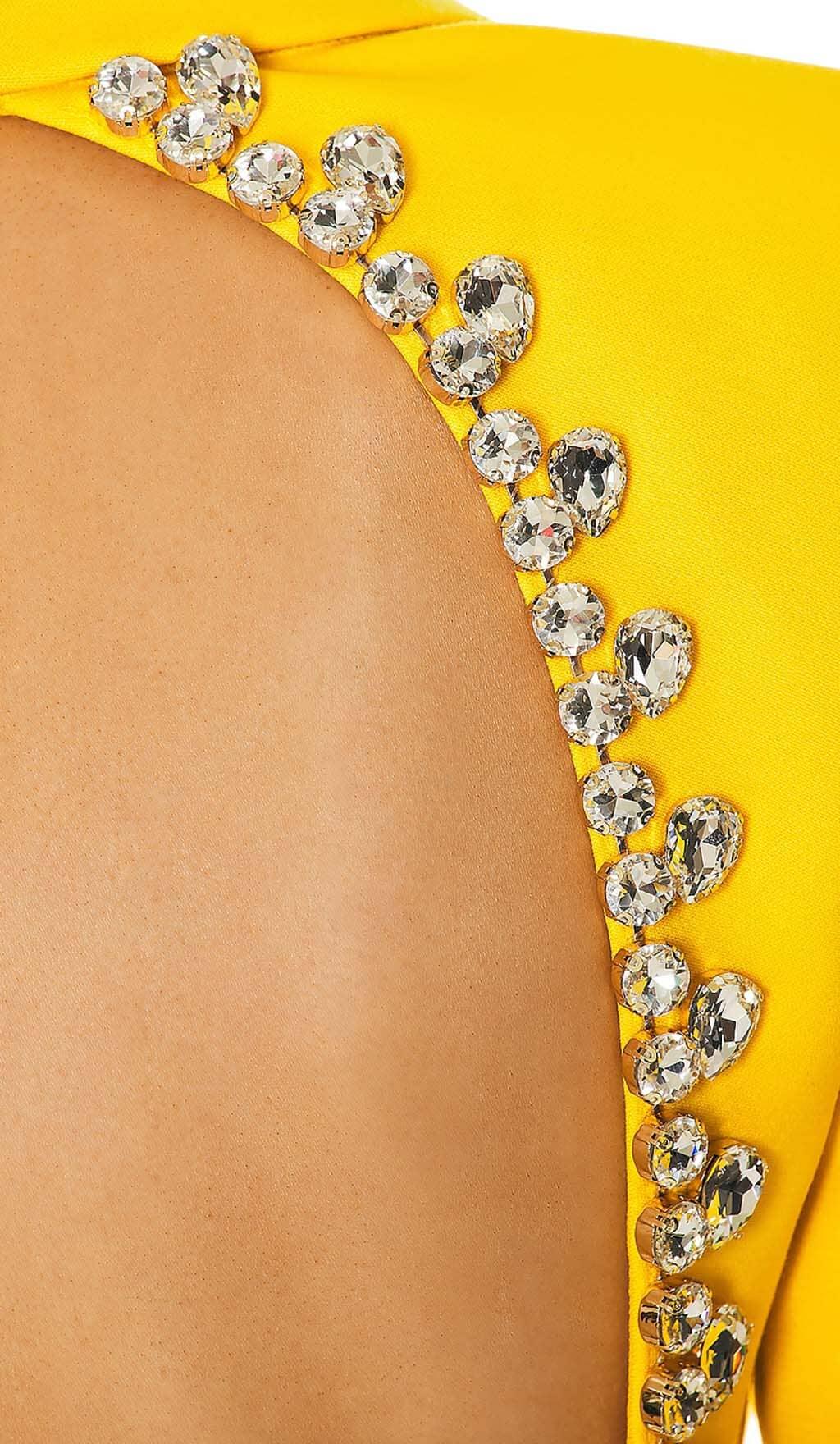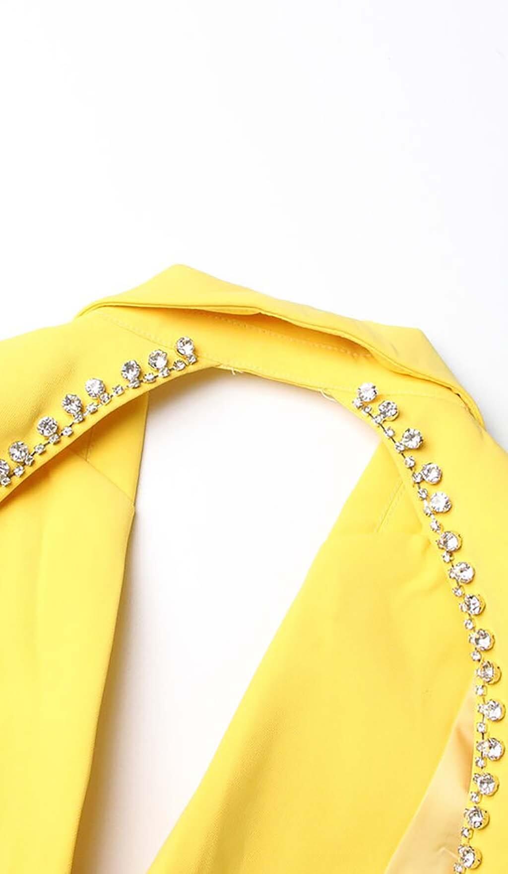 CRYSTAL OPEN BACK JACKET DRESS IN YELLOW