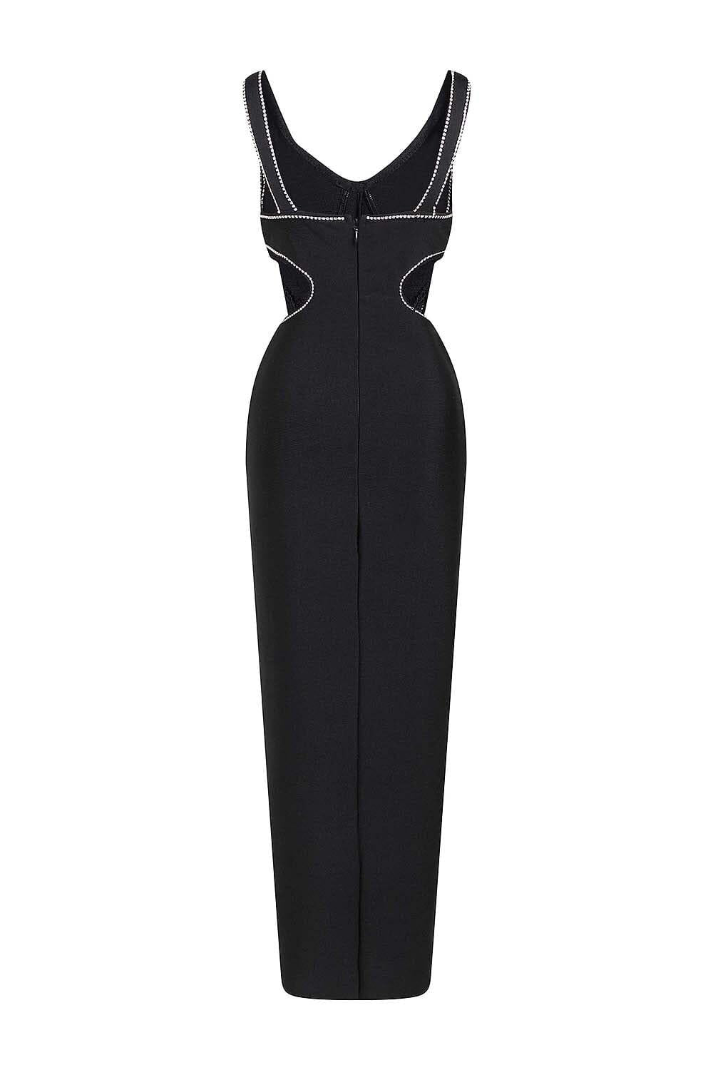CRYSTAL TRIM MAXI BANDAGE DRESS IN BLACK