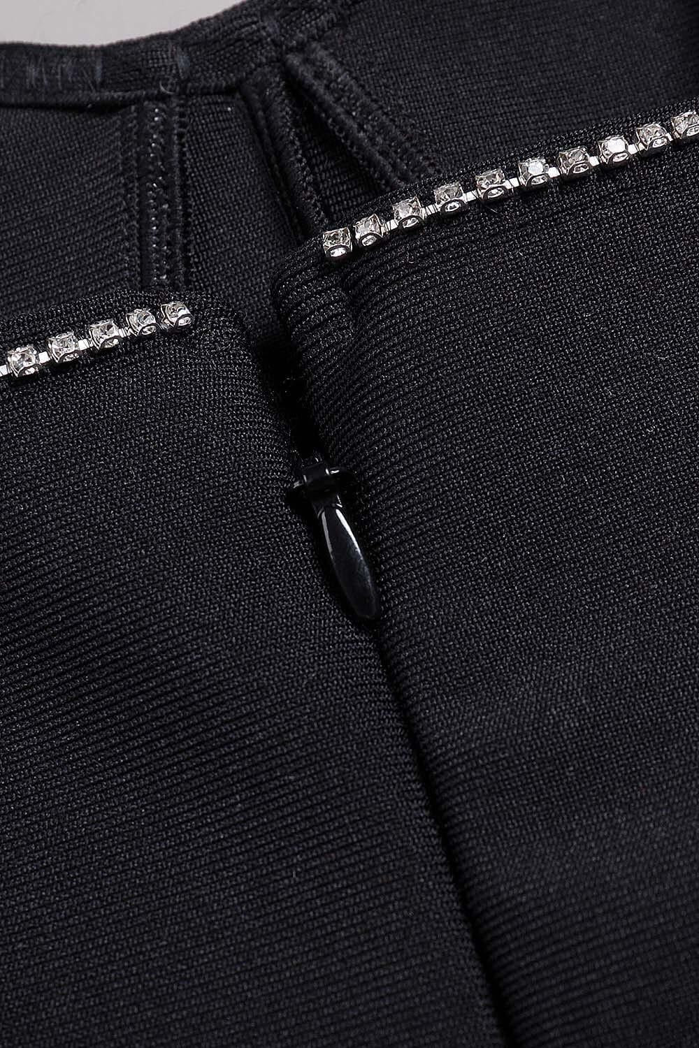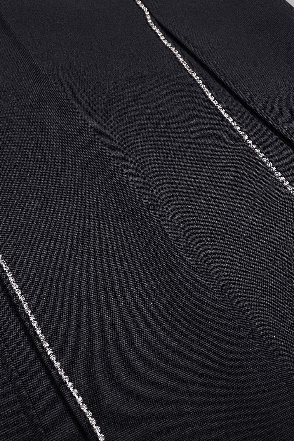 Elevate your style with our Crystal Trim Maxi Bandage Dress in Black. Order yours today and be the best-dressed at your next special event.