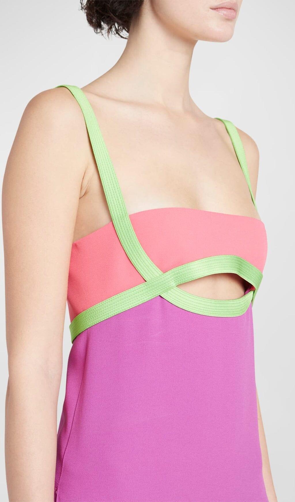 CUT OUT COLORBLOCK SATIN MINI DRESS IN PURPLE