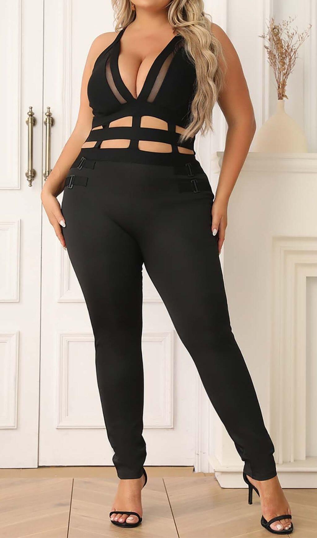 Don't settle for ordinary jumpsuits. Choose our Cut Out Detailed Zipper Back Jumpsuit in Black for a stunning look that will turn heads wherever you go. Order yours today and experience the perfect blend of style and comfort.