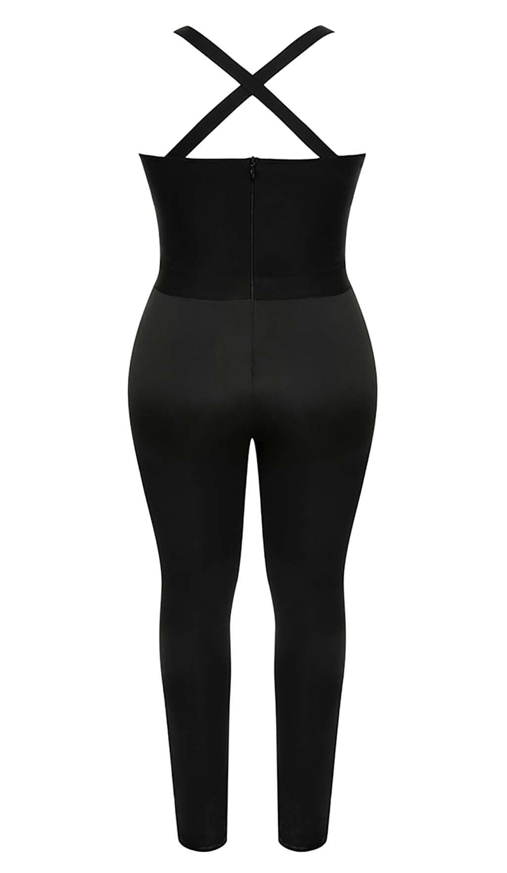 CUT OUT DETAILED ZIPPER BACK JUMPSUIT IN BLACK