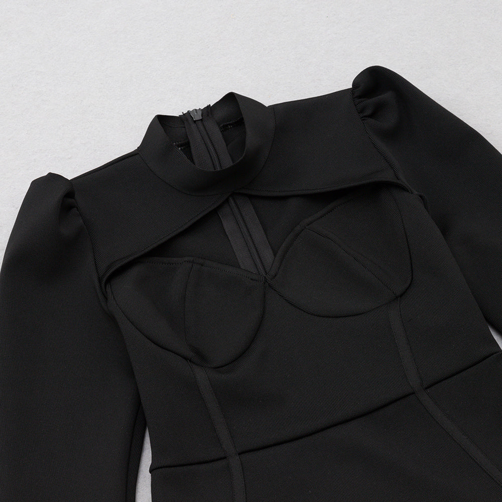 Featuring a captivating cut out front and a sexy split thigh design, this dress will leave you feeling confident and alluring. Made with high-quality bandage fabric, it hugs your body in all the right places, highlighting your curves and giving you a show-stopping silhouette. Elevate your wardrobe with this must-have piece and turn heads wherever you go.