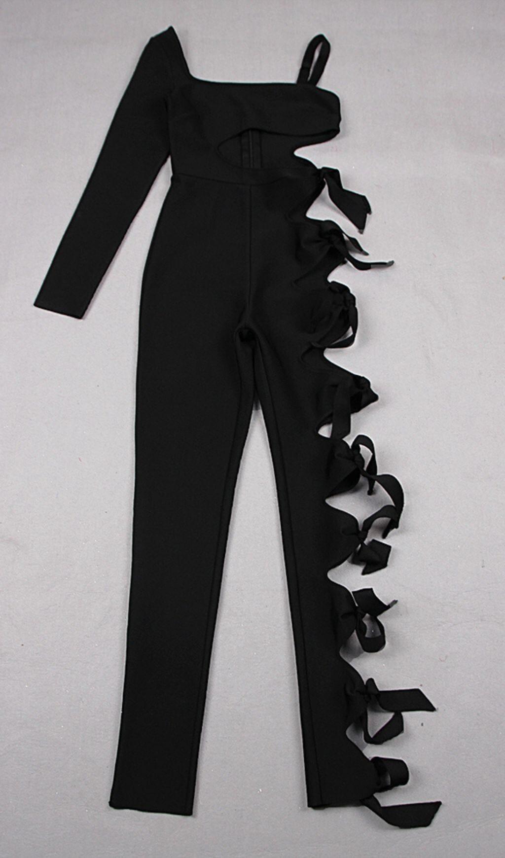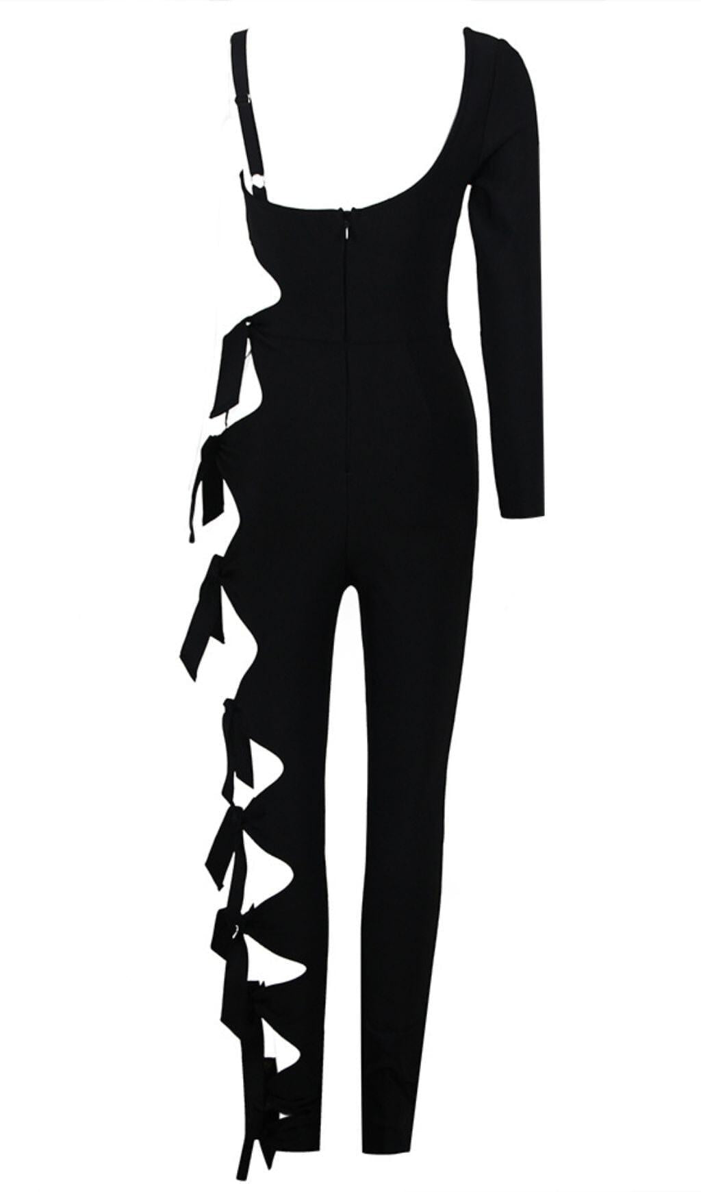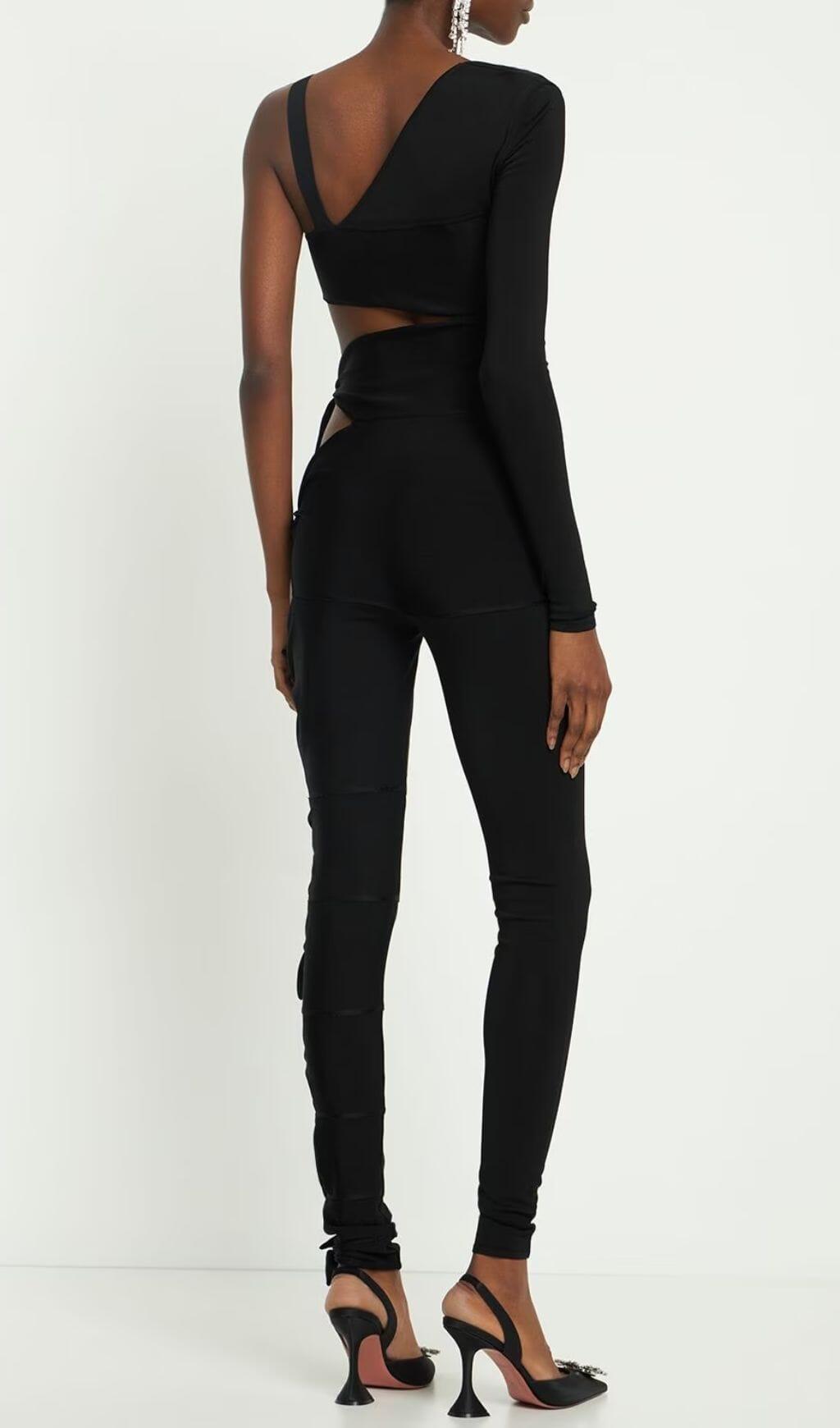 CUT OUT SINGLE-SLEEVE JUMPSUIT IN BLACK