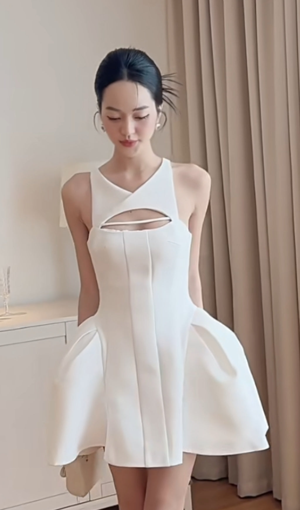 CUT-OUT SLEEVELESS CORSET MINI DRESS IN WHITE