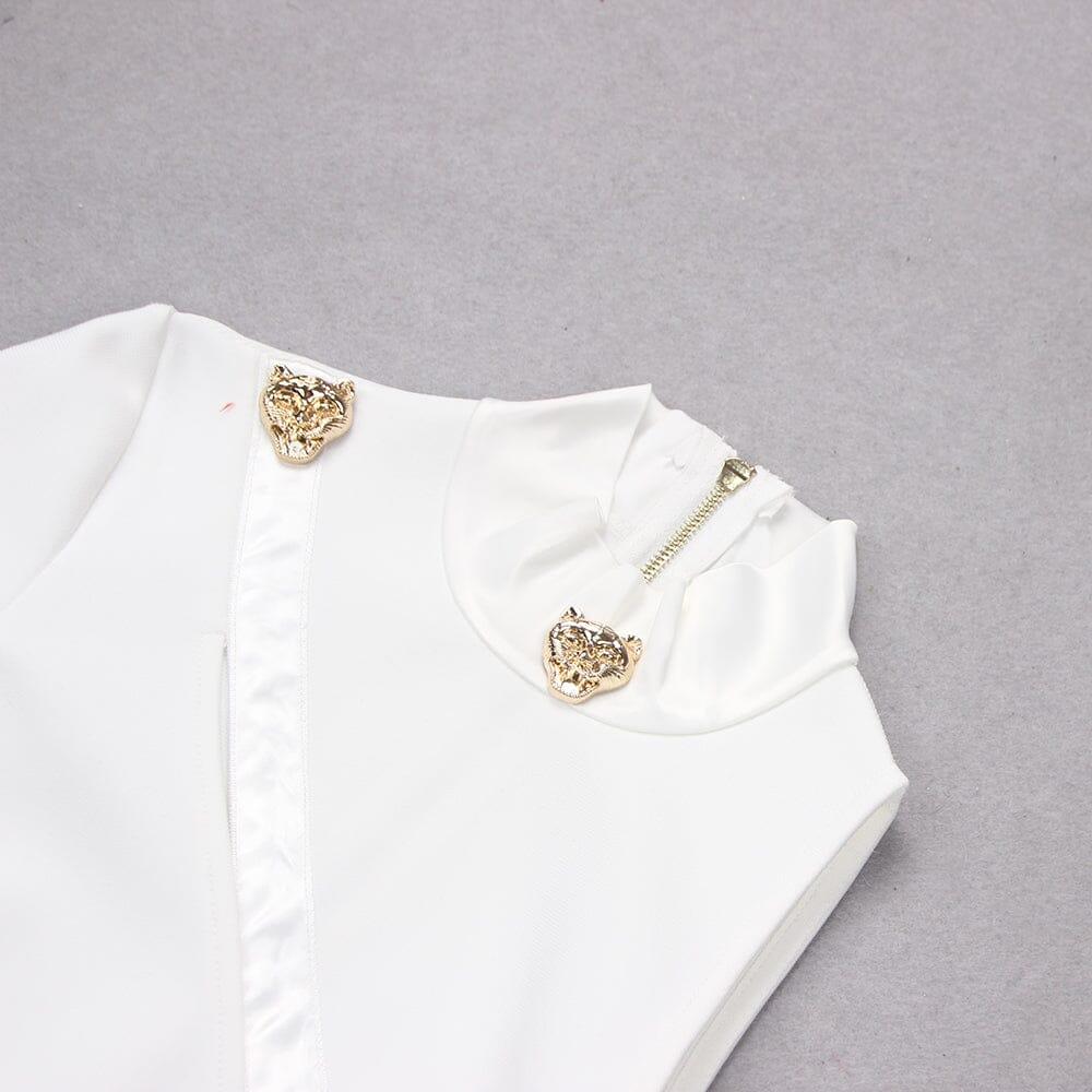 The crisp white color adds a touch of elegance to this dress, making it perfect for any special occasion. The fitted silhouette accentuates your curves and creates a flattering shape that will make you feel confident and beautiful. Whether you're attending a night out or a formal event, this dress is sure to make a lasting impression.