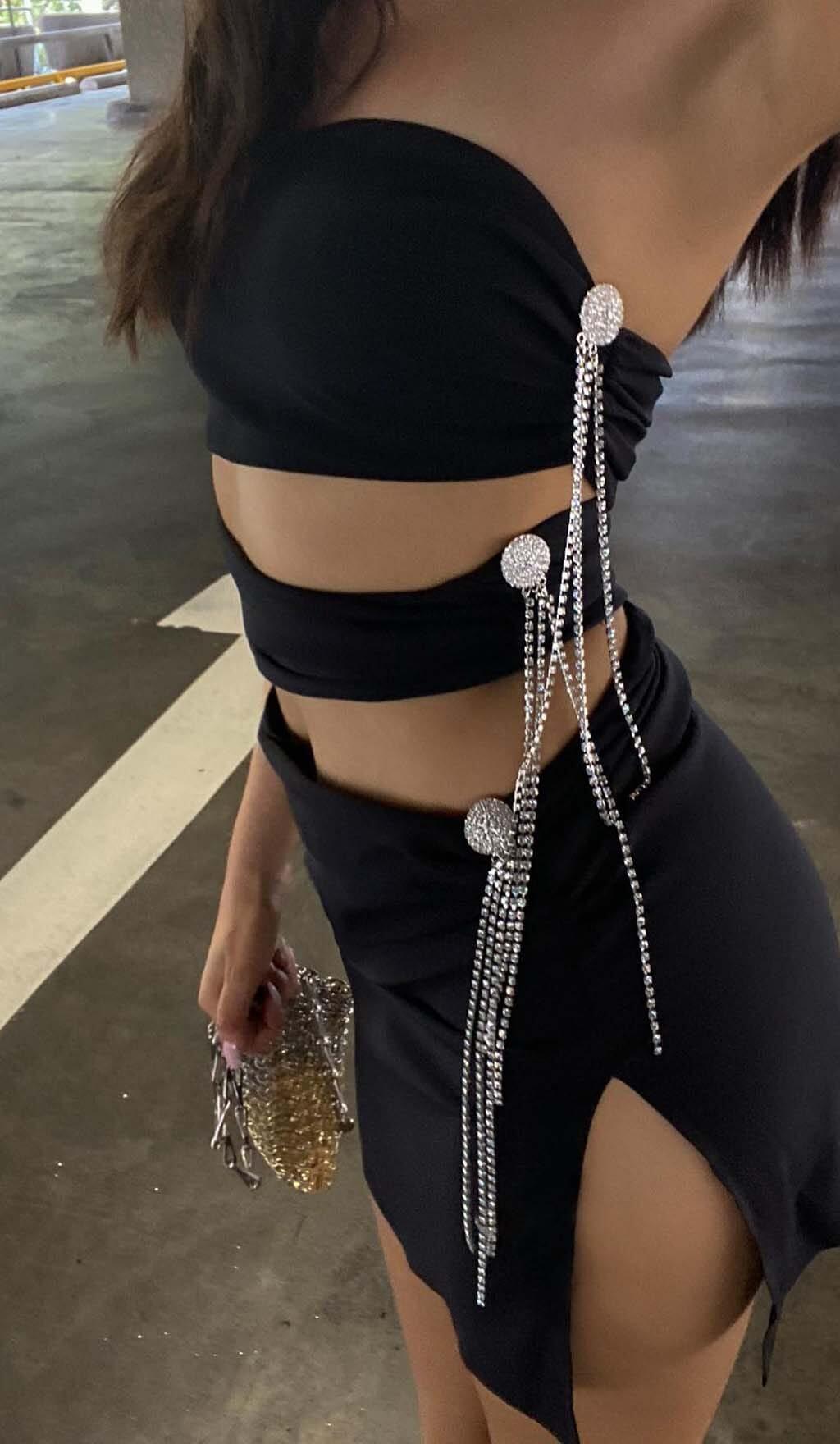Introducing Our Cutout Bandeau Mini Dress in Black