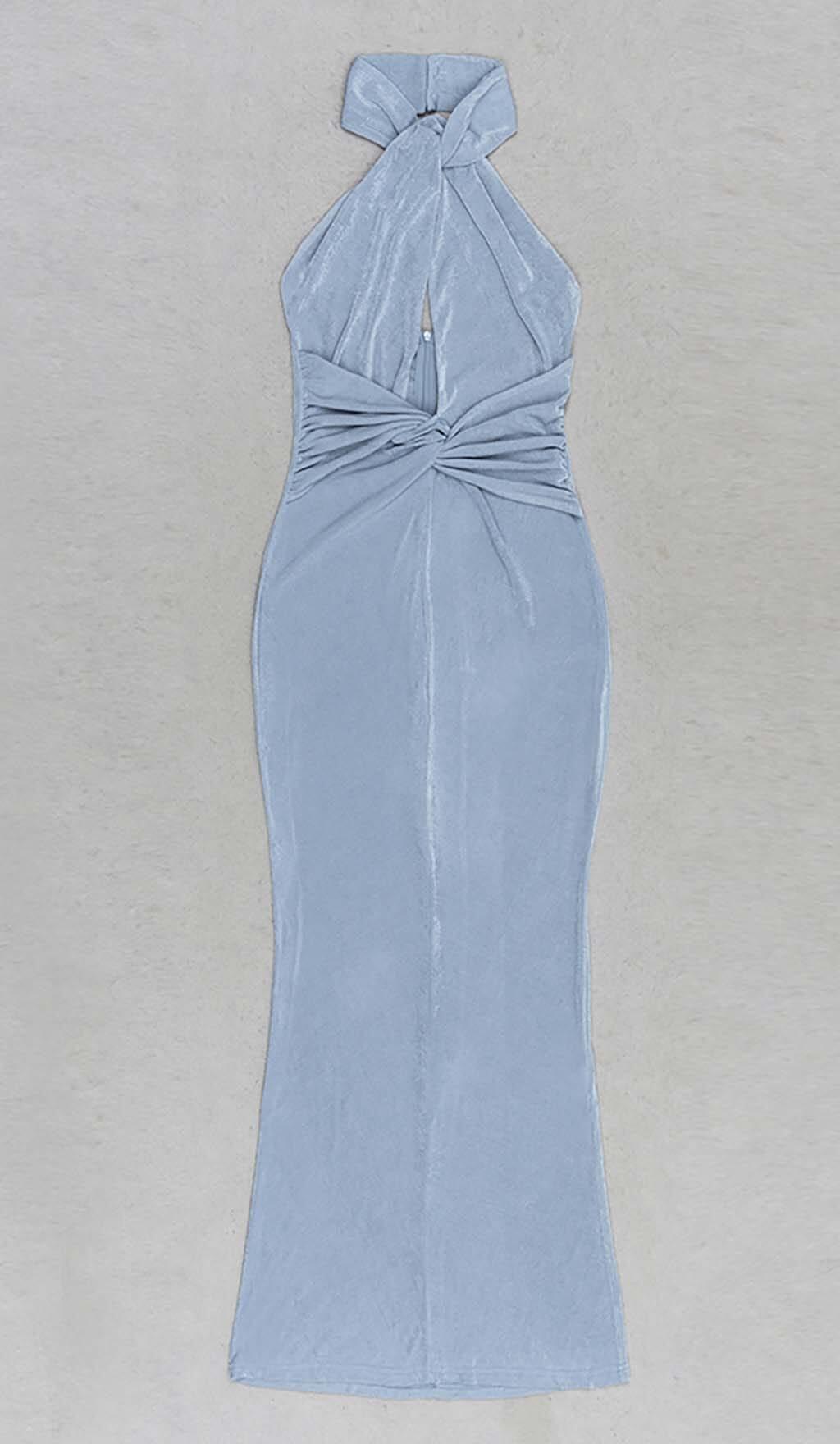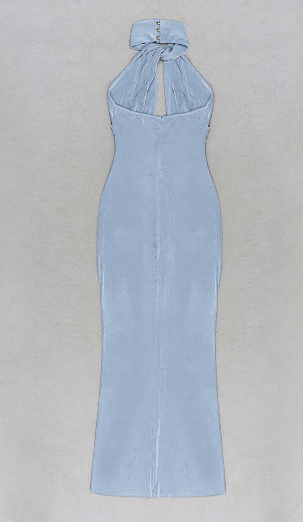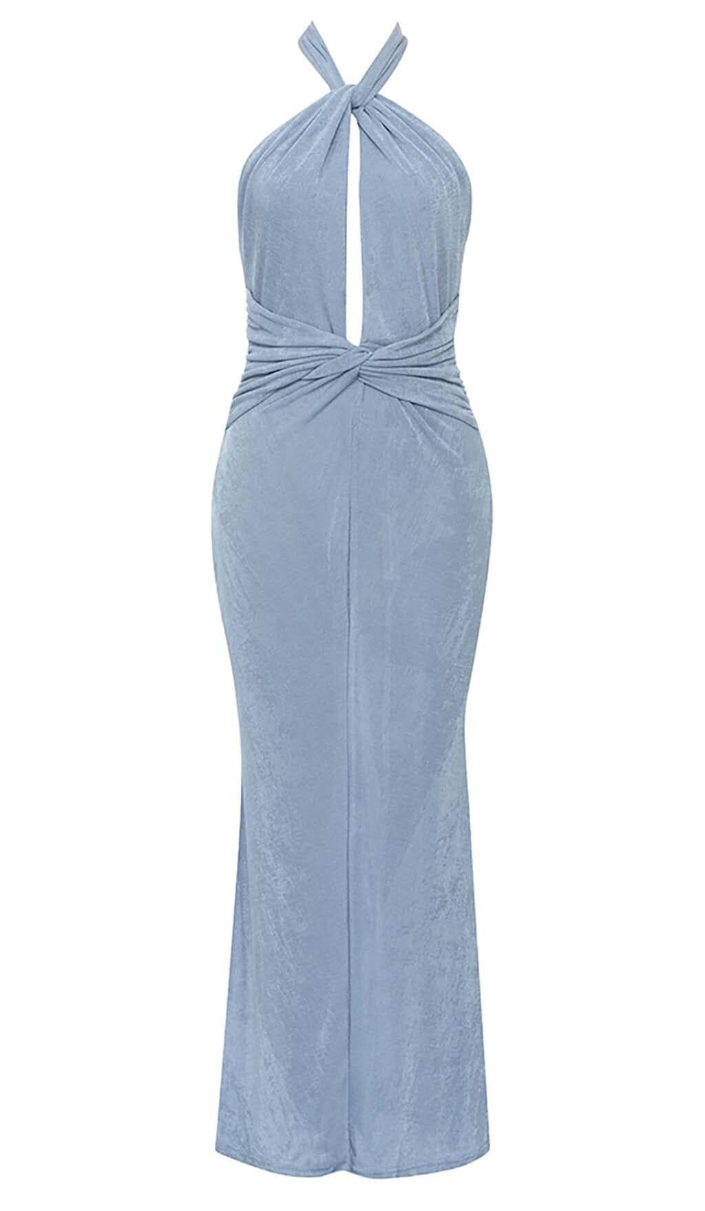 CUTOUT HALTER MIDI DRESS IN MISTY SKY