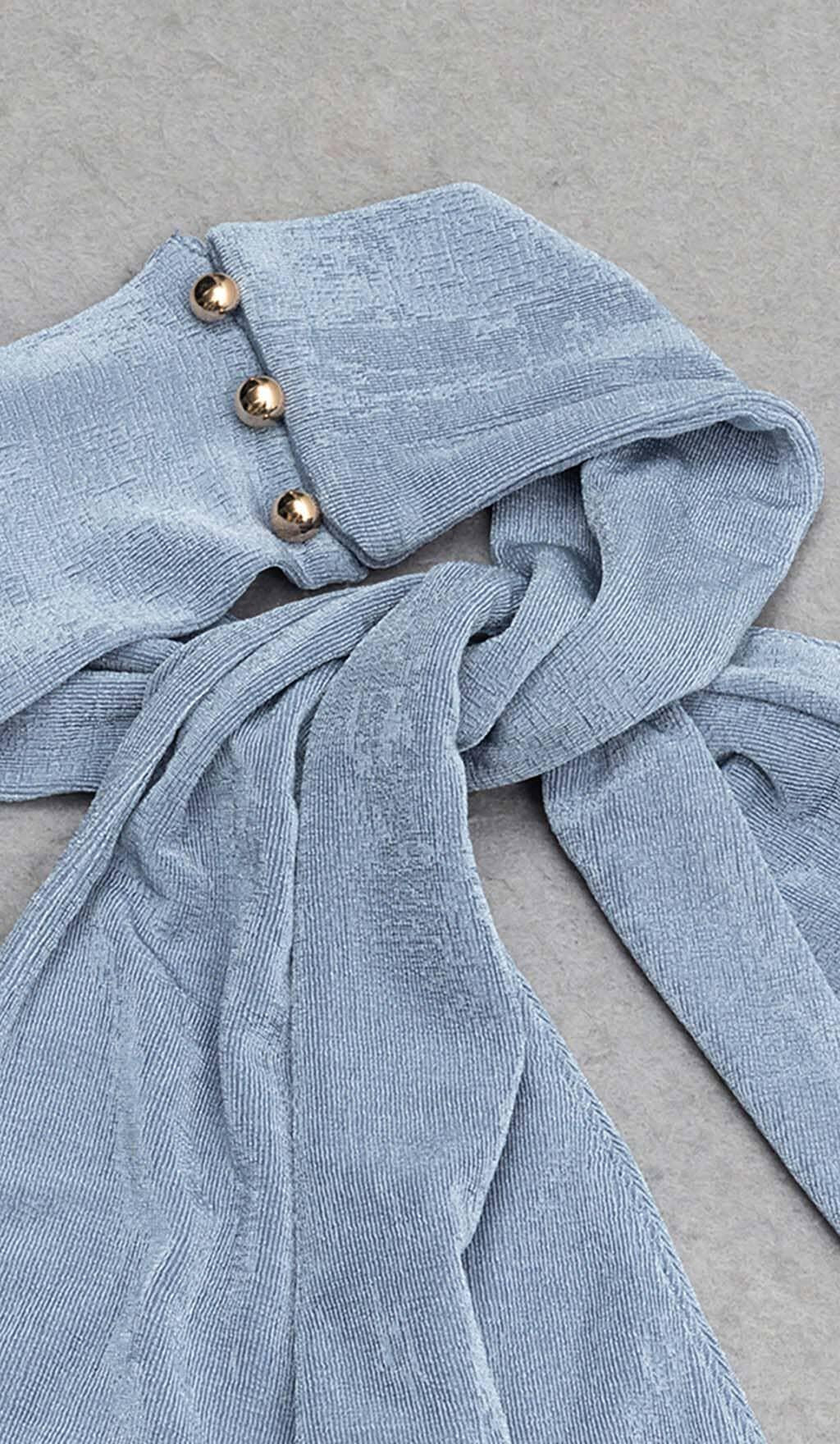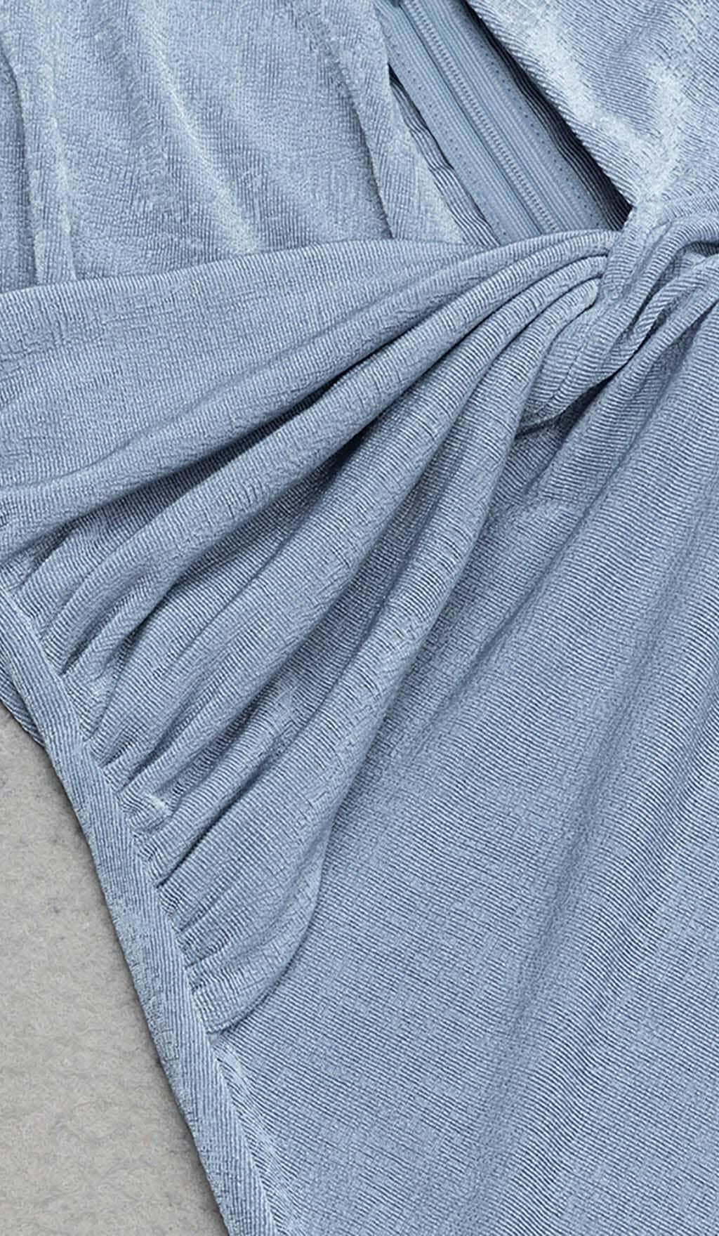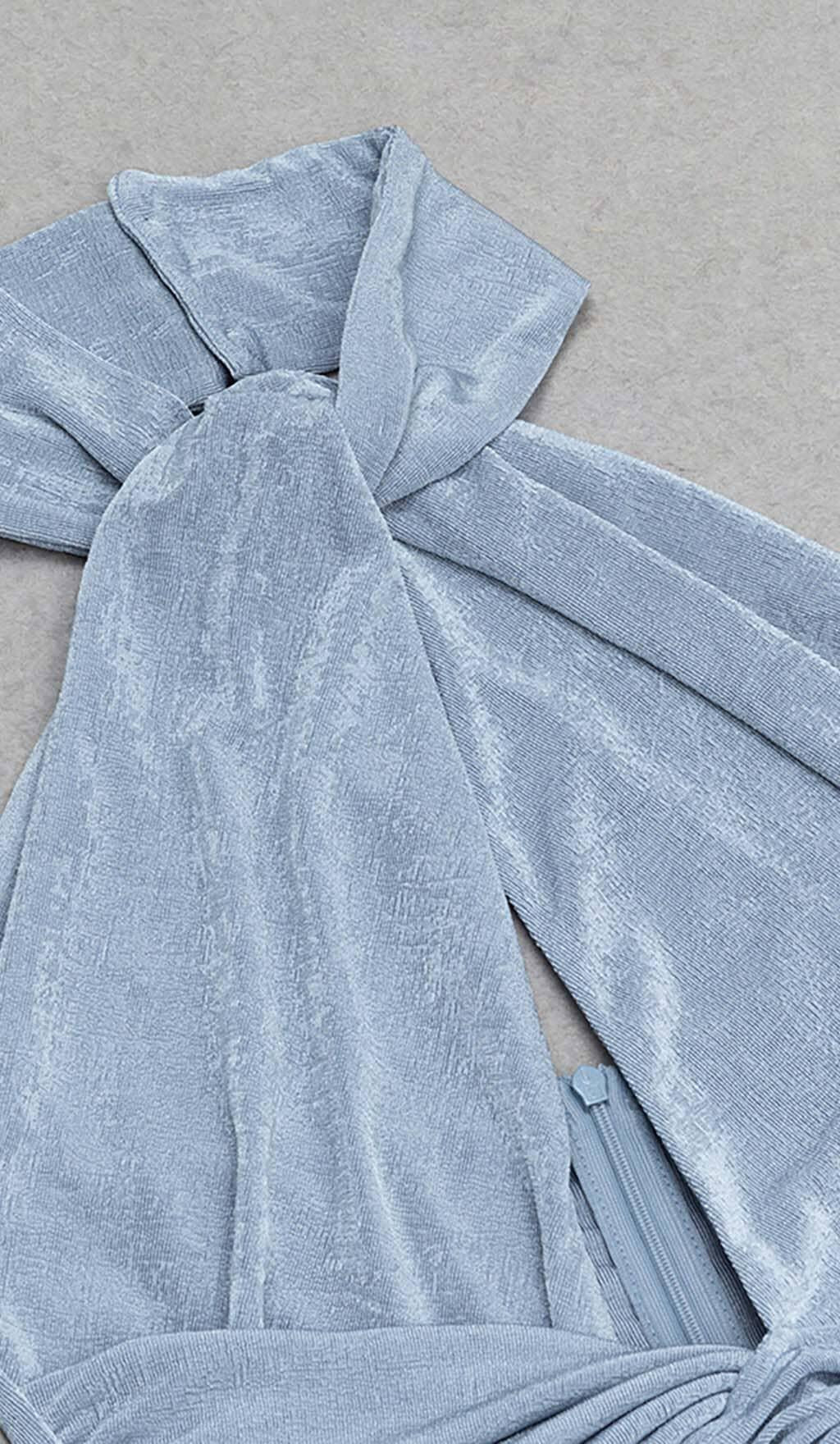 CUTOUT HALTER MIDI DRESS IN MISTY SKY