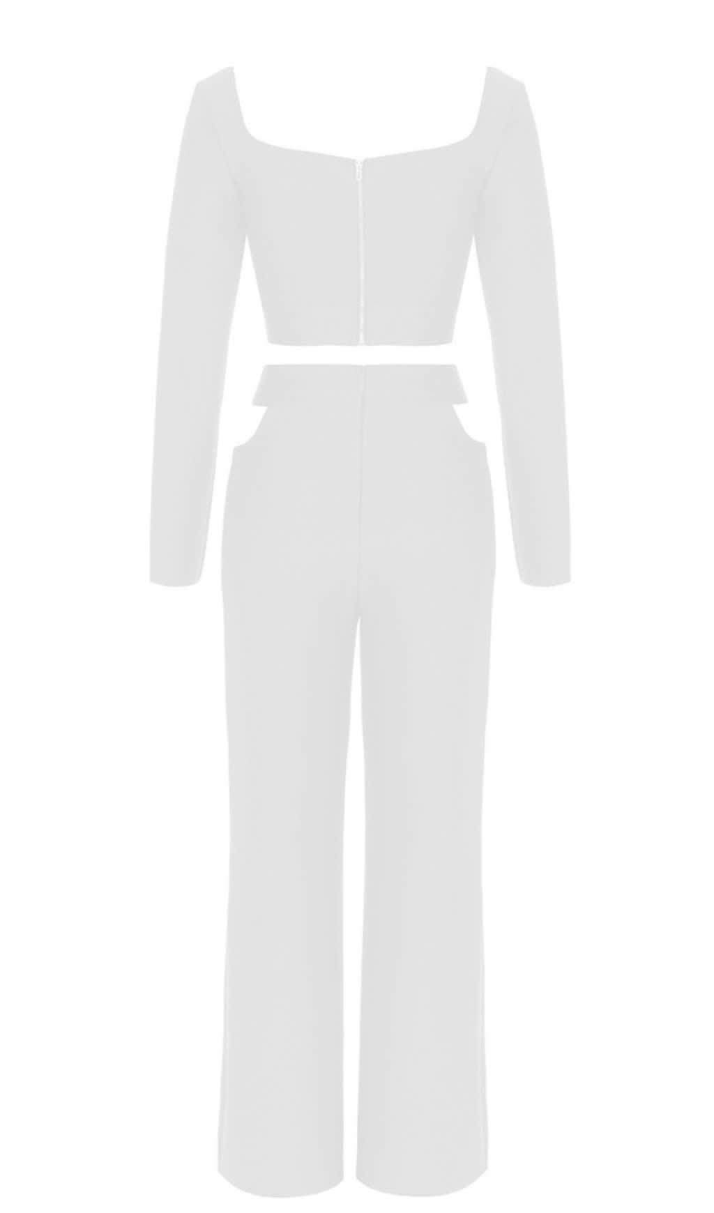 Cutout Long - Sleeve Crop Top And Pants Set in White