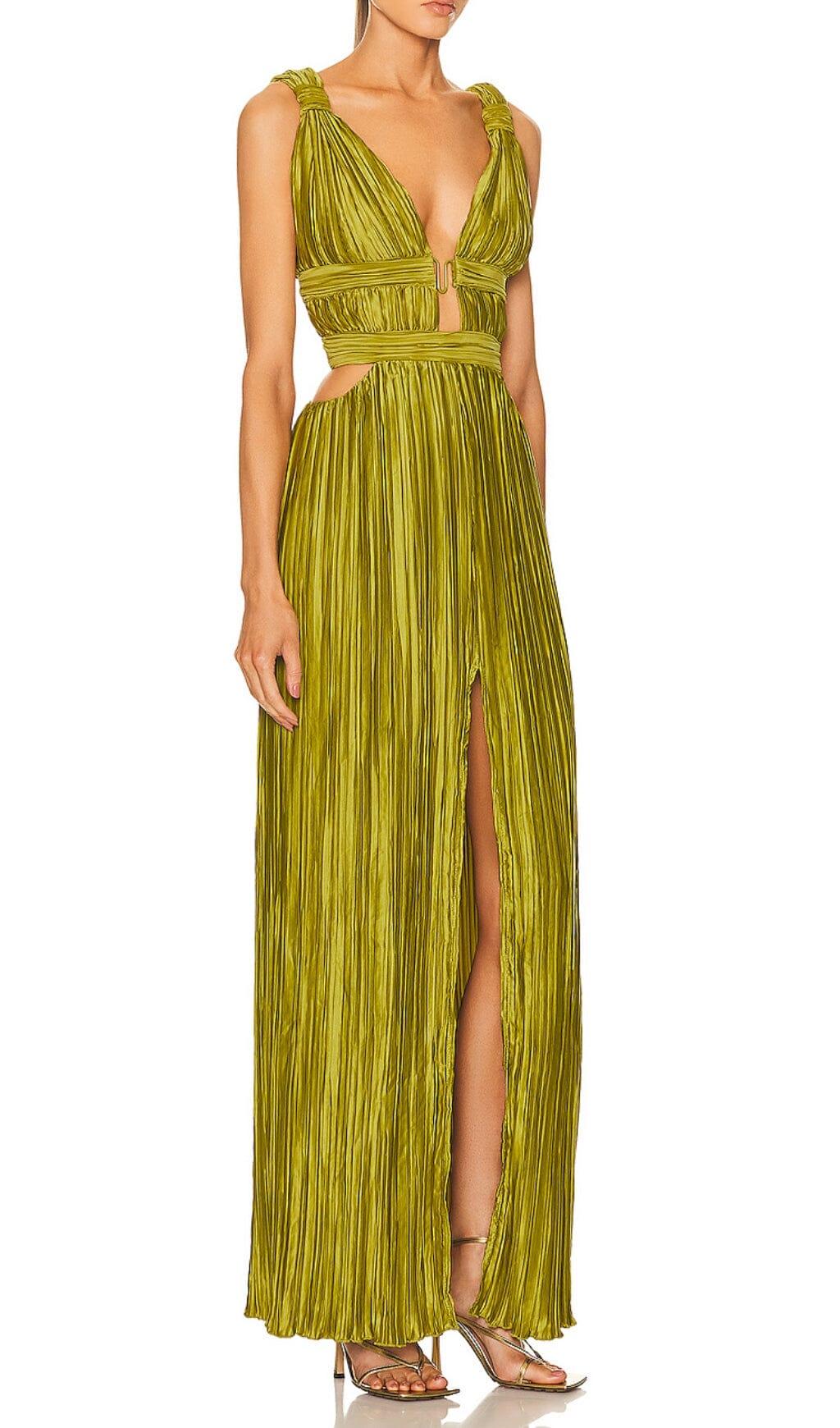 CUTOUT PLUNGE MIDI DRESS IN LIME GREEN