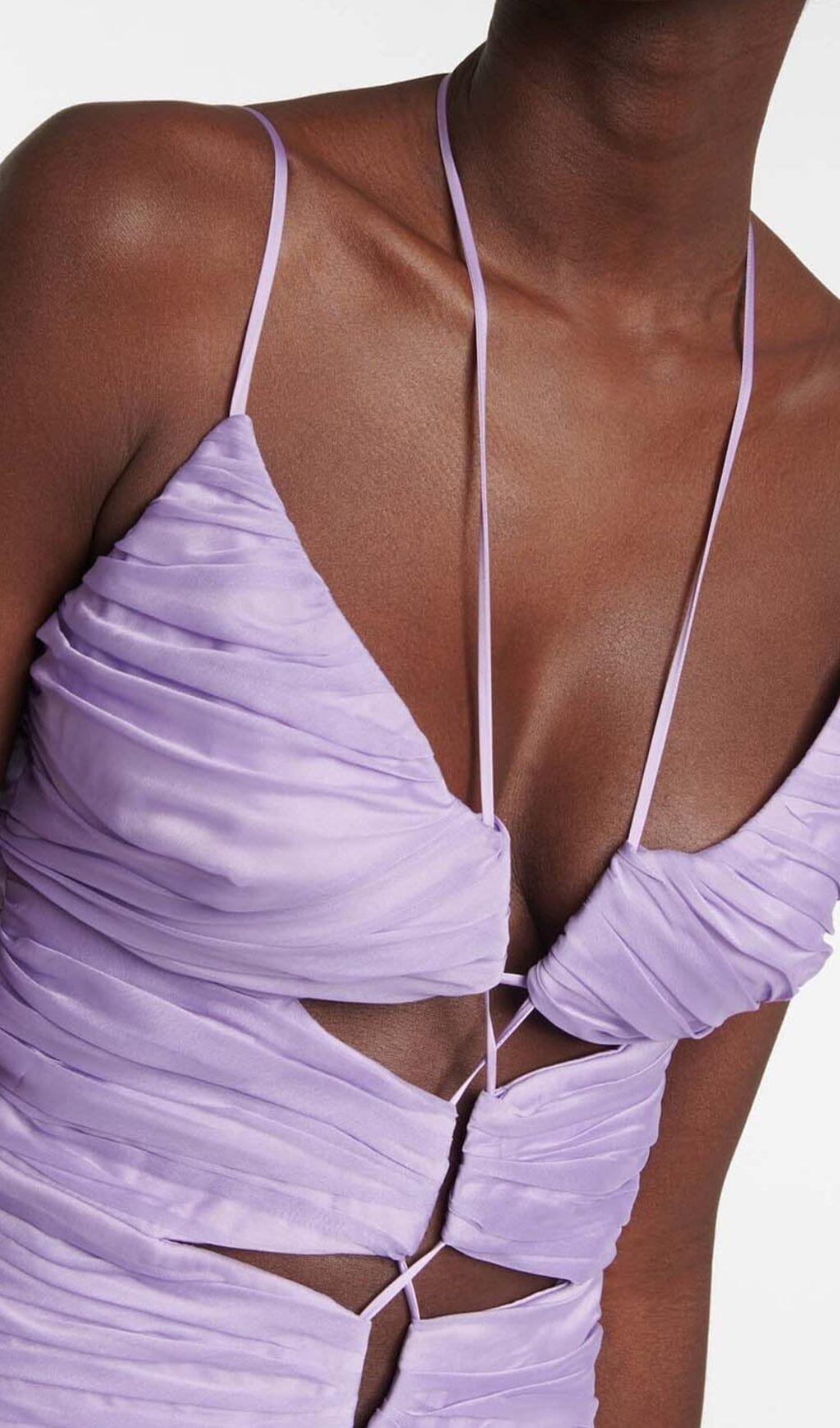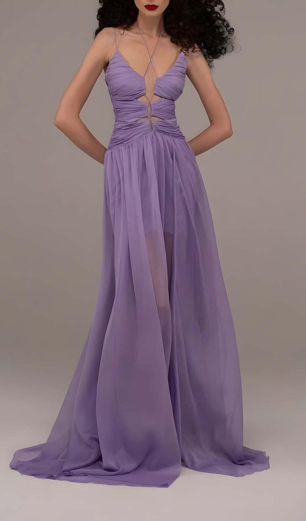 CUTOUT TULLE MAXI DRESS IN LIGHT PURPLE