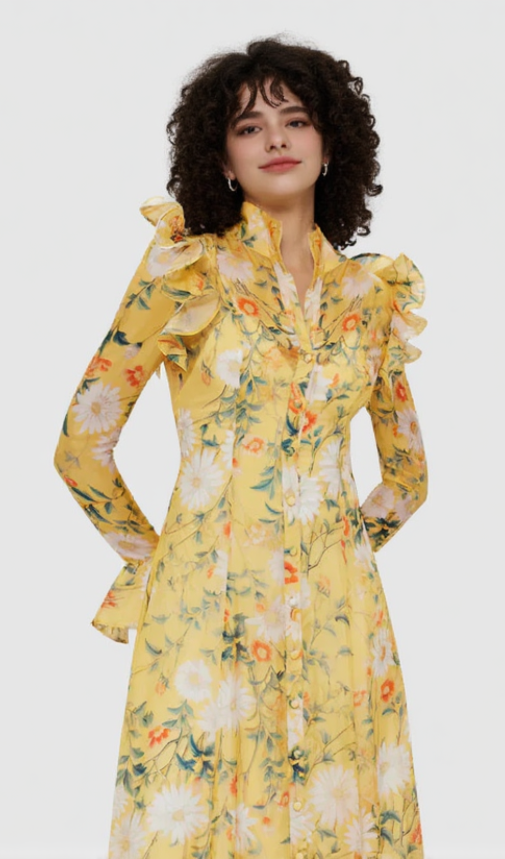 Elevate your style with our Daisy Print Butterfly Sleeve Midi Dress in yellow. Boasting a stunning daisy print and elegant butterfly sleeves, this dress is both stylish and comfortable. Crafted from premium fabric, it offers the perfect balance of fashion and function. Perfect for any occasion, this dress is a must-have for every fashion-forward woman.