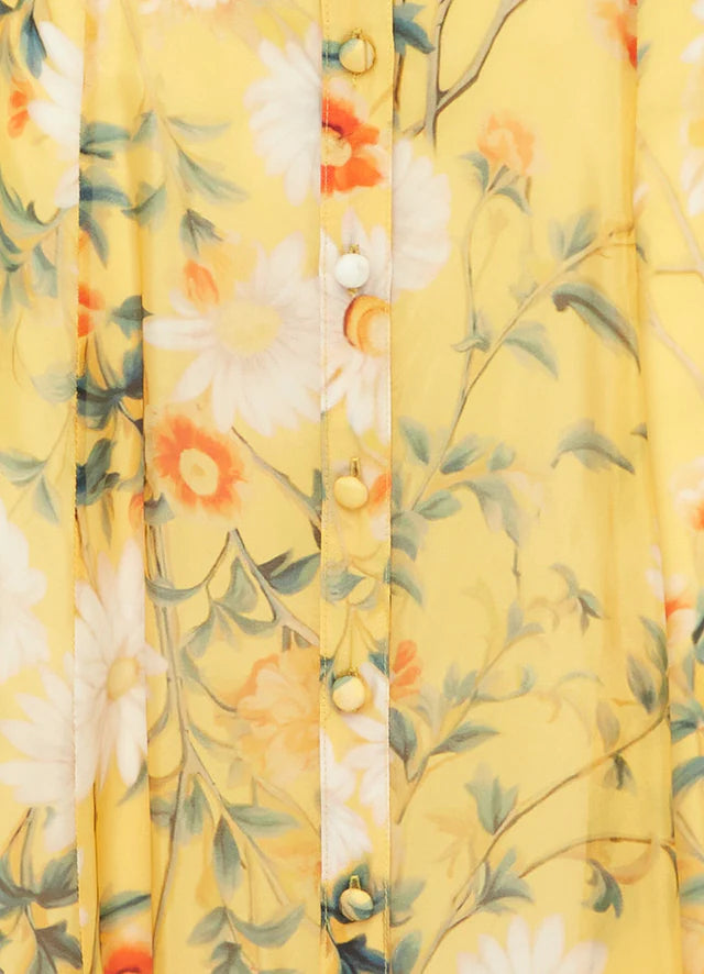 Daisy Print Butterfly Sleeve Midi Dress in yellow