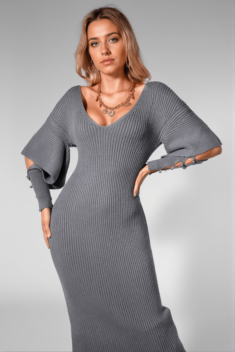 Dajahnae Grey Knit Sweater Dress
