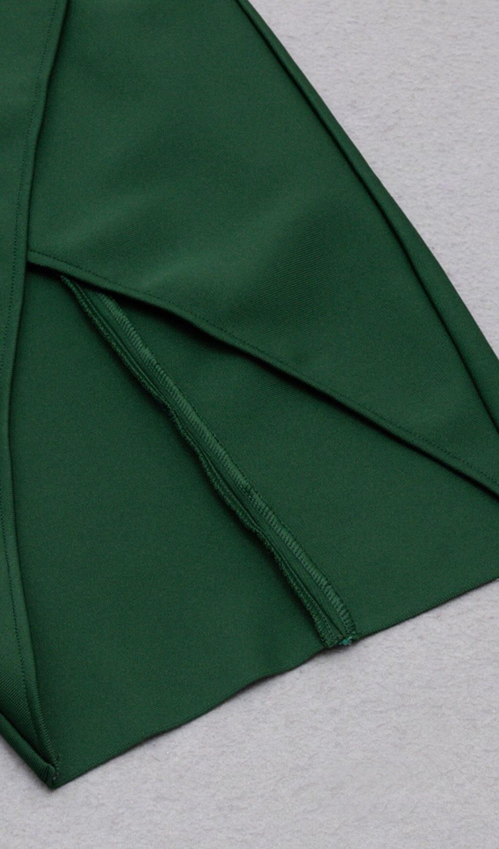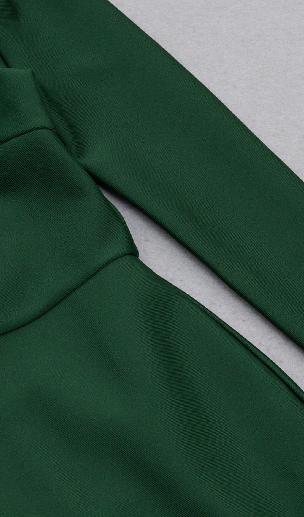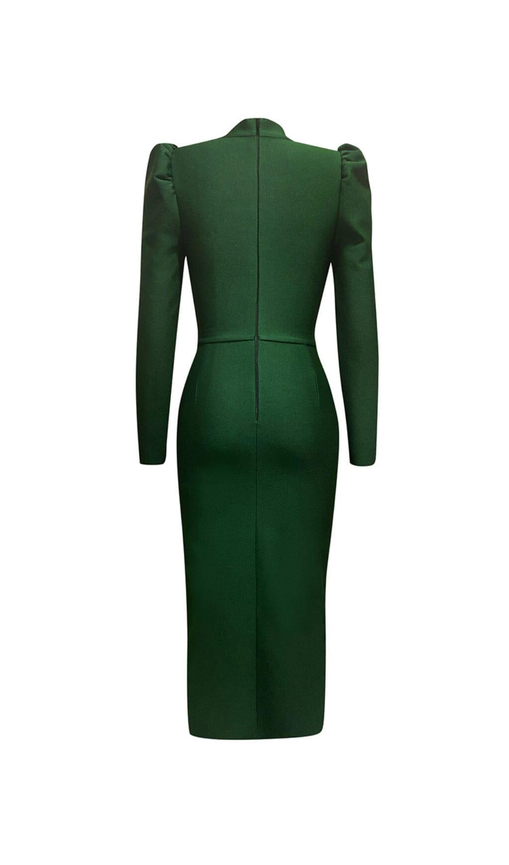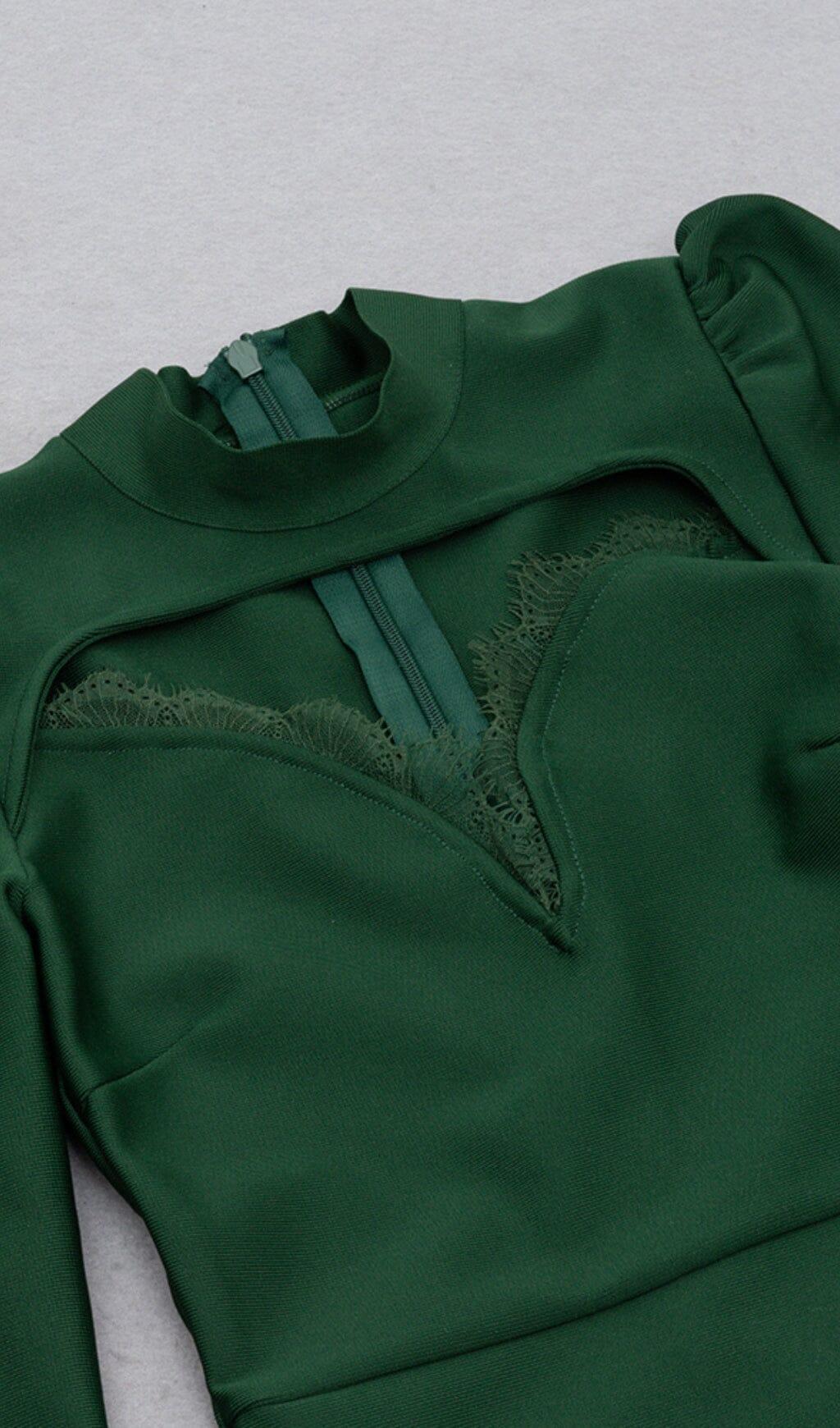 DARK GREEN CHEST HOLLOW LACE STITCHED SLIM MIDI DRESS