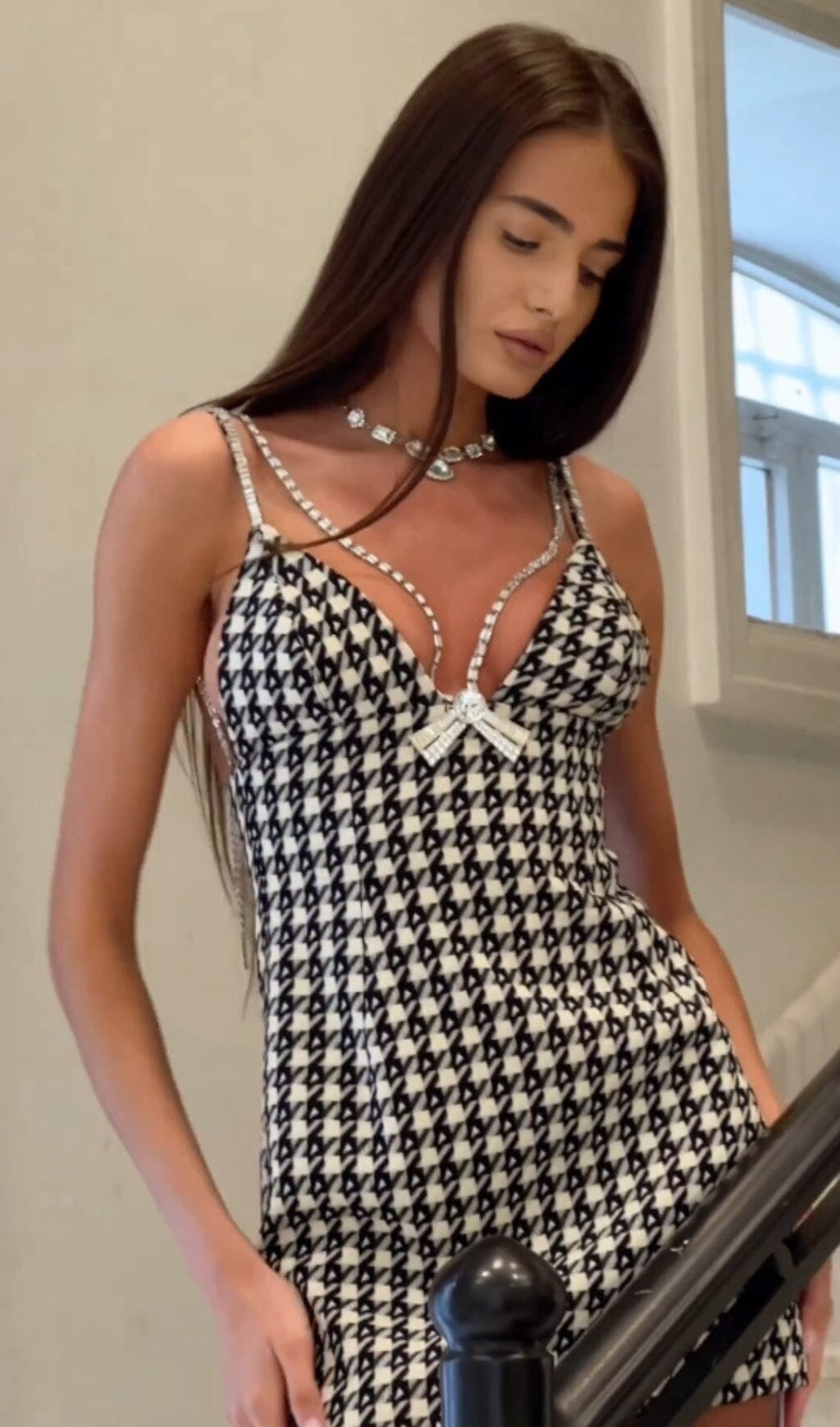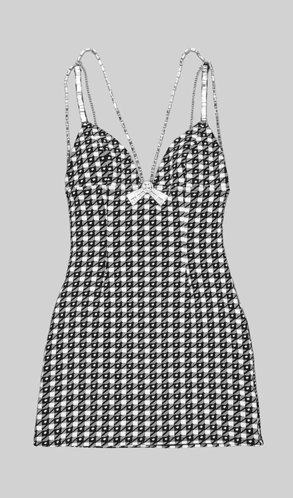 DECO BOW BLACK MULTI MINI DRESS