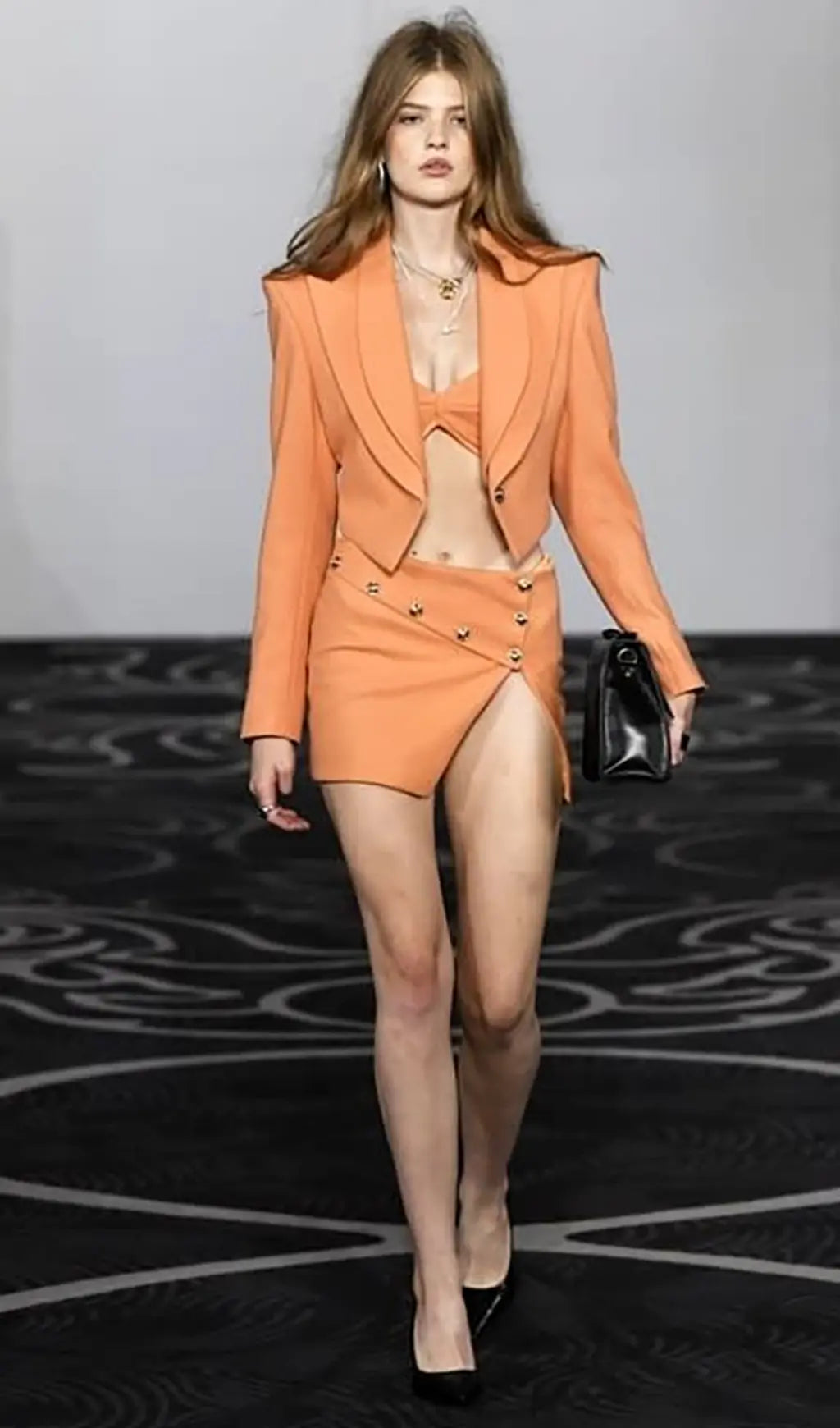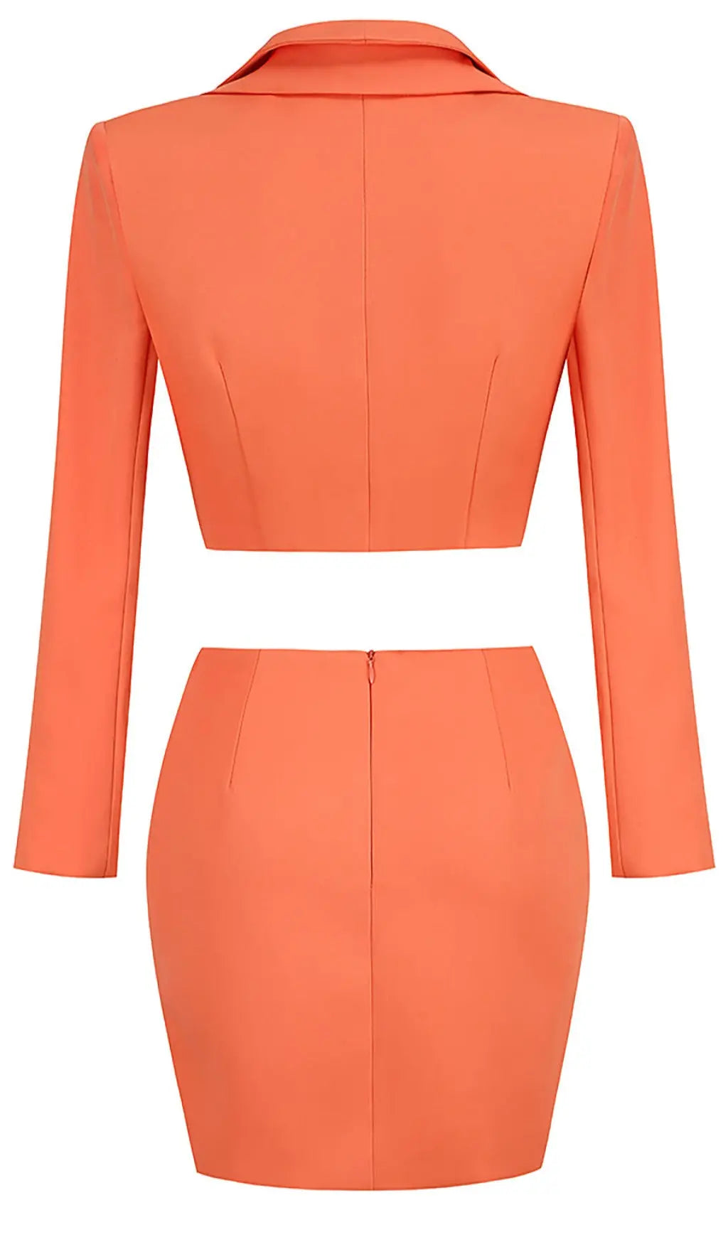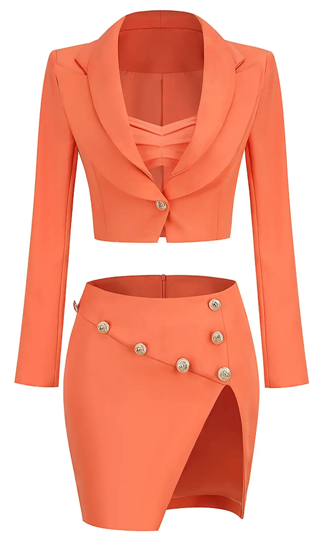 DEEP V LAPEL BLAZER AND SLIT SKIRT THREE PIECE SET