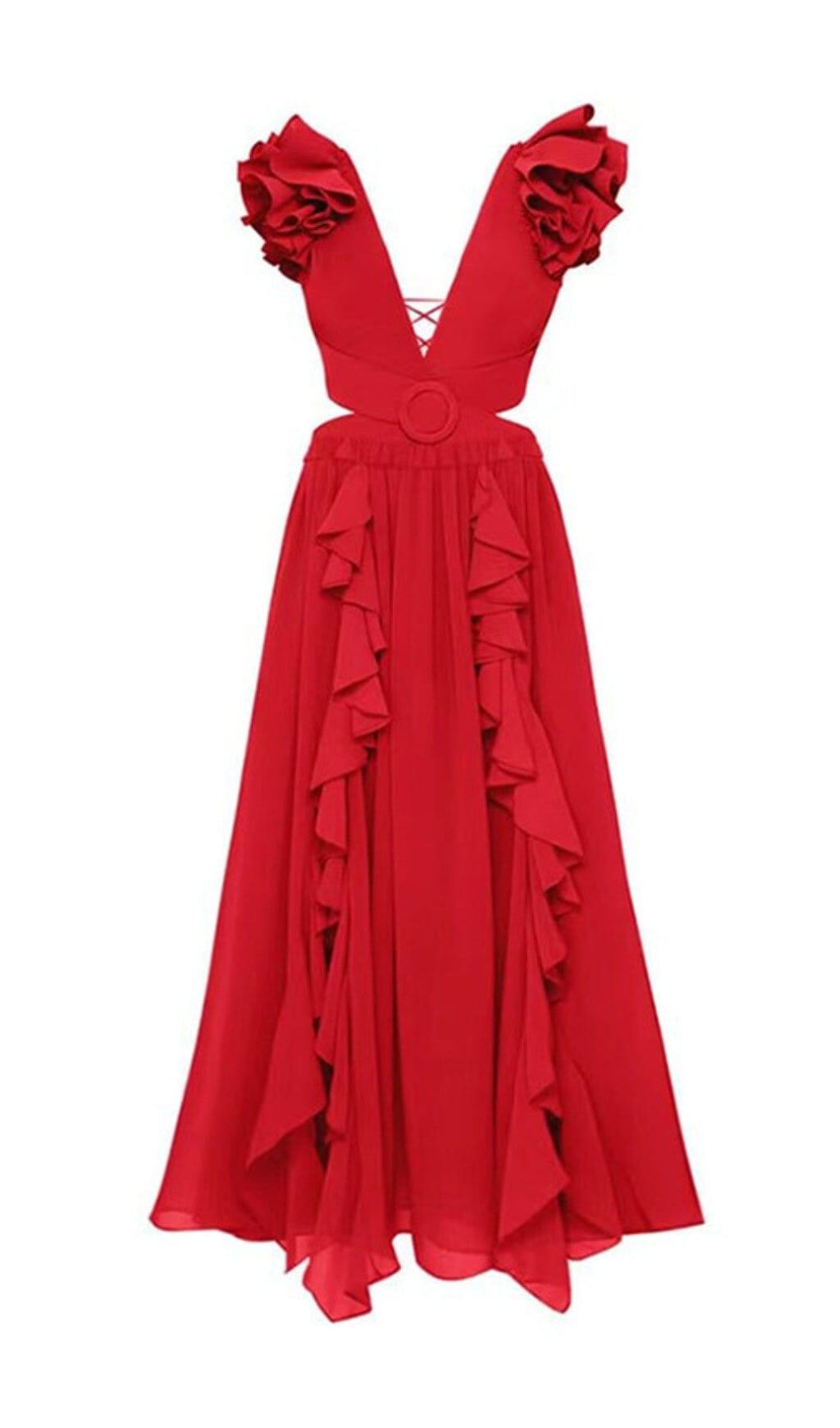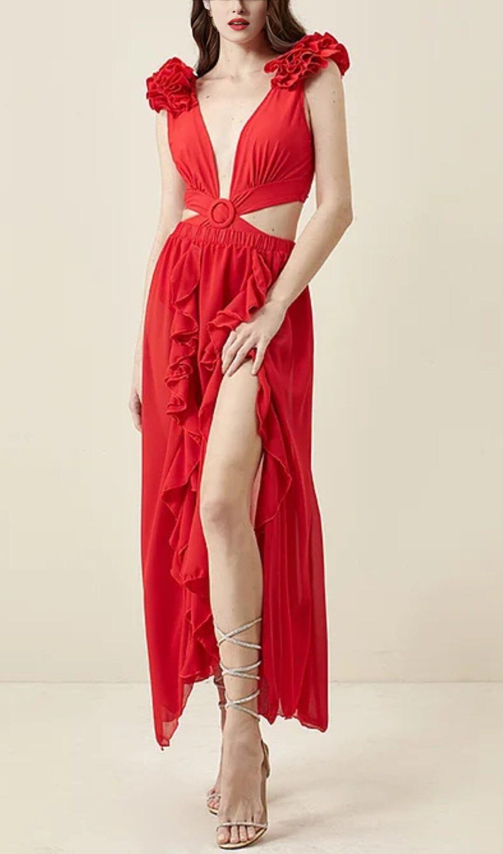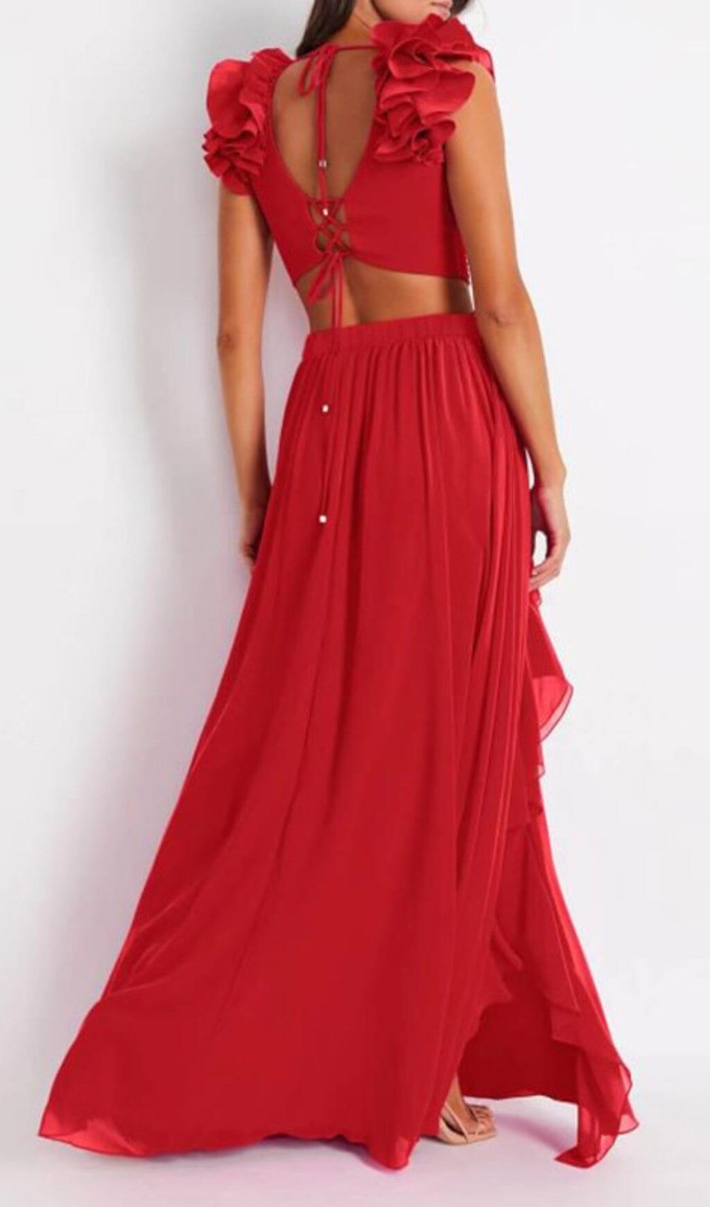 DEEP V RED CUTOUT ONE PIECE SWIMSUIT AND SKIRT