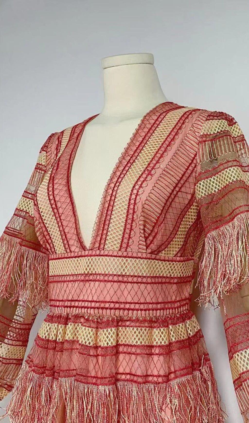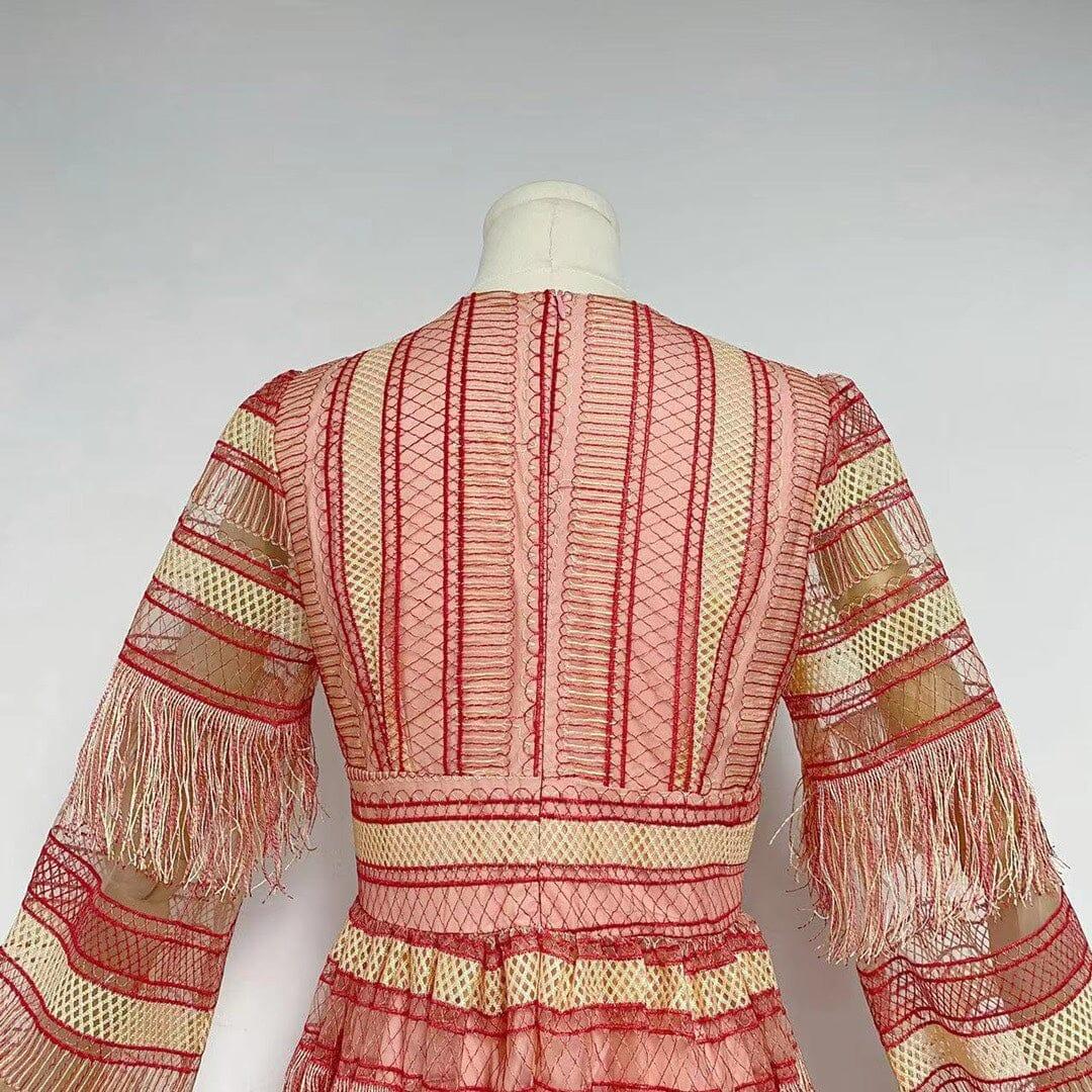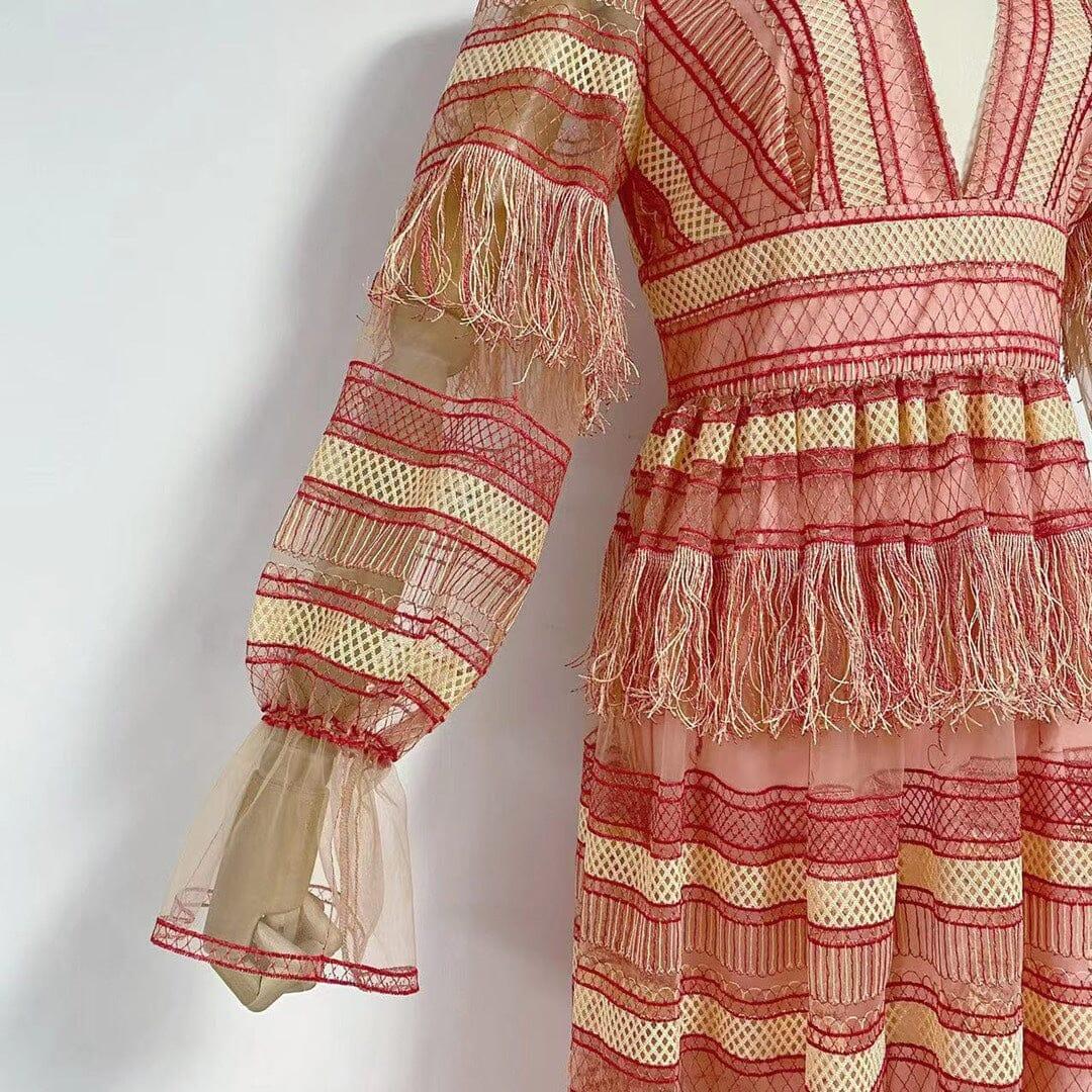 Elevate your style and make a lasting impression with our DEEP V TASSEL BLOUSON SLEEVES MAXI DRESS. Order yours today and get ready to shine!