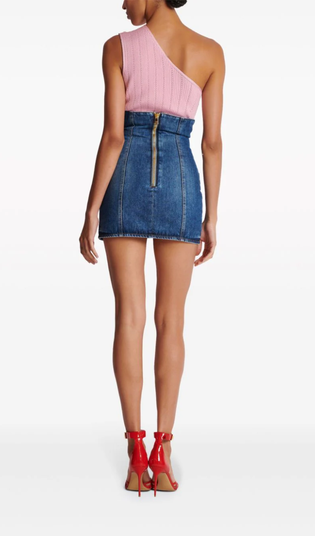 • Visible gold metal zip fastening on the back with Balmain Paris-engraved slider