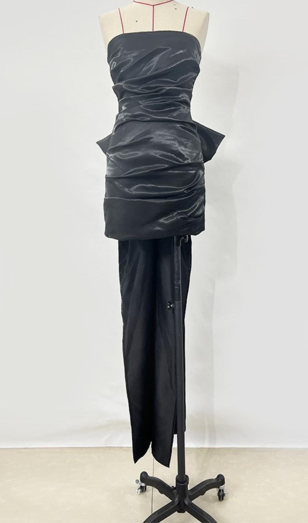 DETACHABLE BOWKNOT MINI DRESS IN BLACK