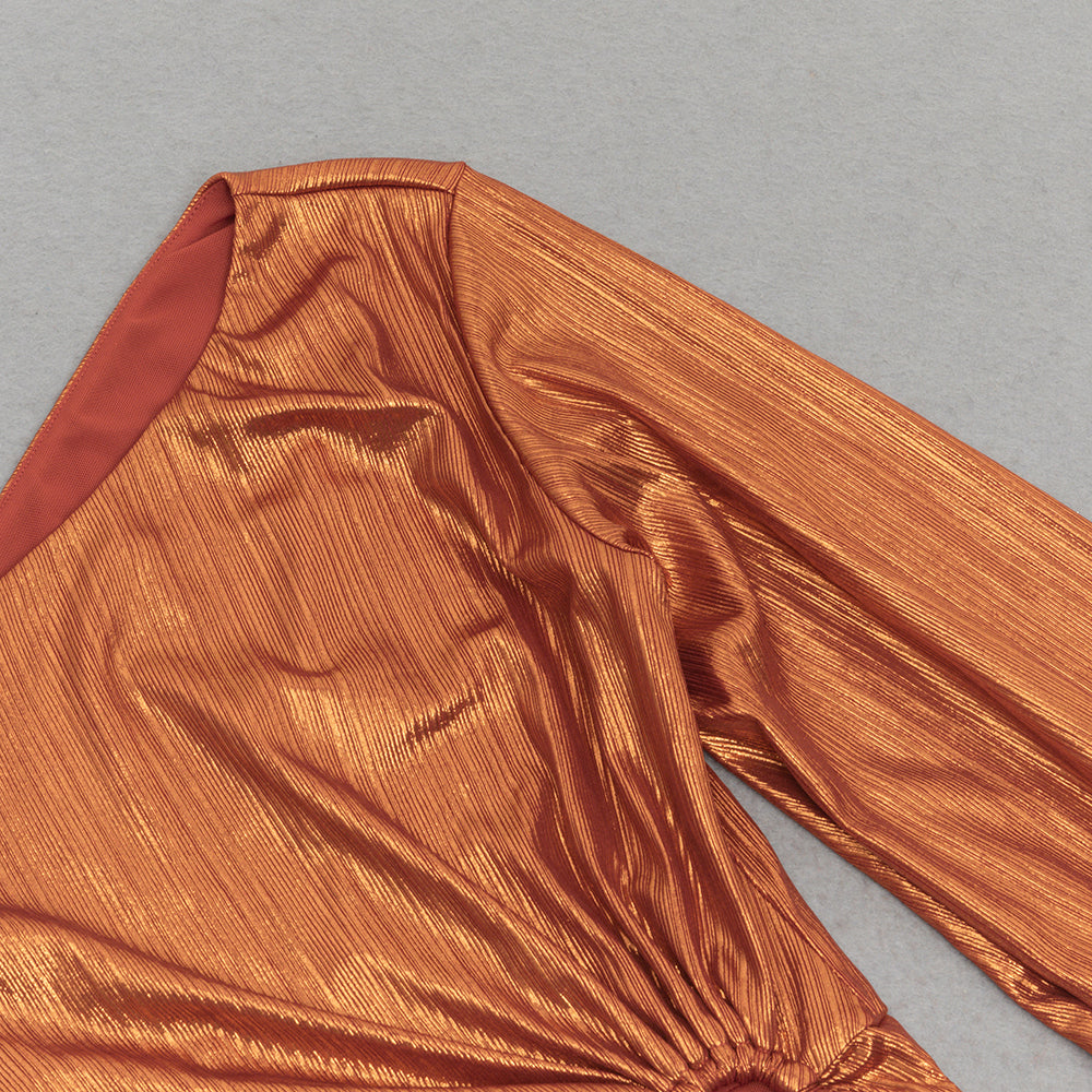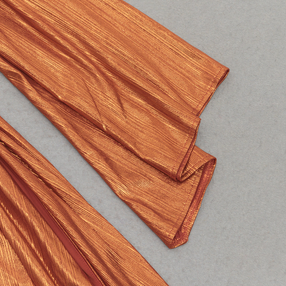 The unique diagonal shoulder and asymmetrical sleeve design adds a touch of edginess to this elegant dress. With a stylish slit and ruffled detailing, this dress will make heads turn. Perfect for any special occasion.