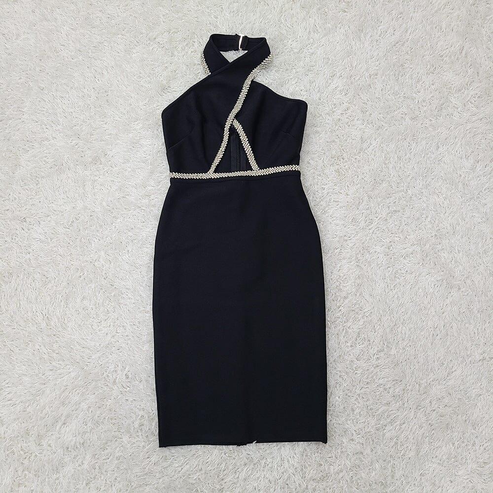 Elevate your style and make a statement with this stunning Diamante Trim Midi Dress. Order now and be ready to dazzle at your next event!