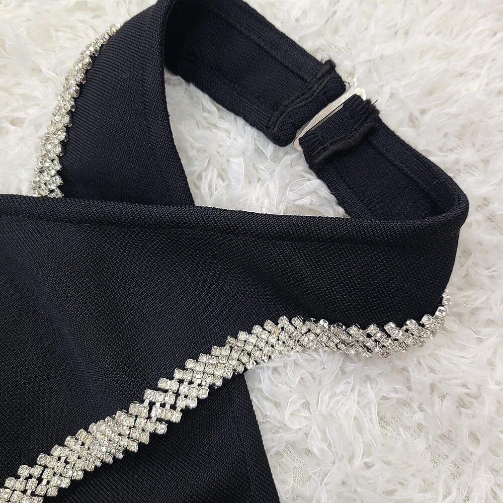 The light-catching diamante embellishments are delicately sprinkled along the neckline, creating a stunning focal point. Whether you're attending a cocktail party, a special event, or hitting the dance floor, this dress is sure to turn heads.