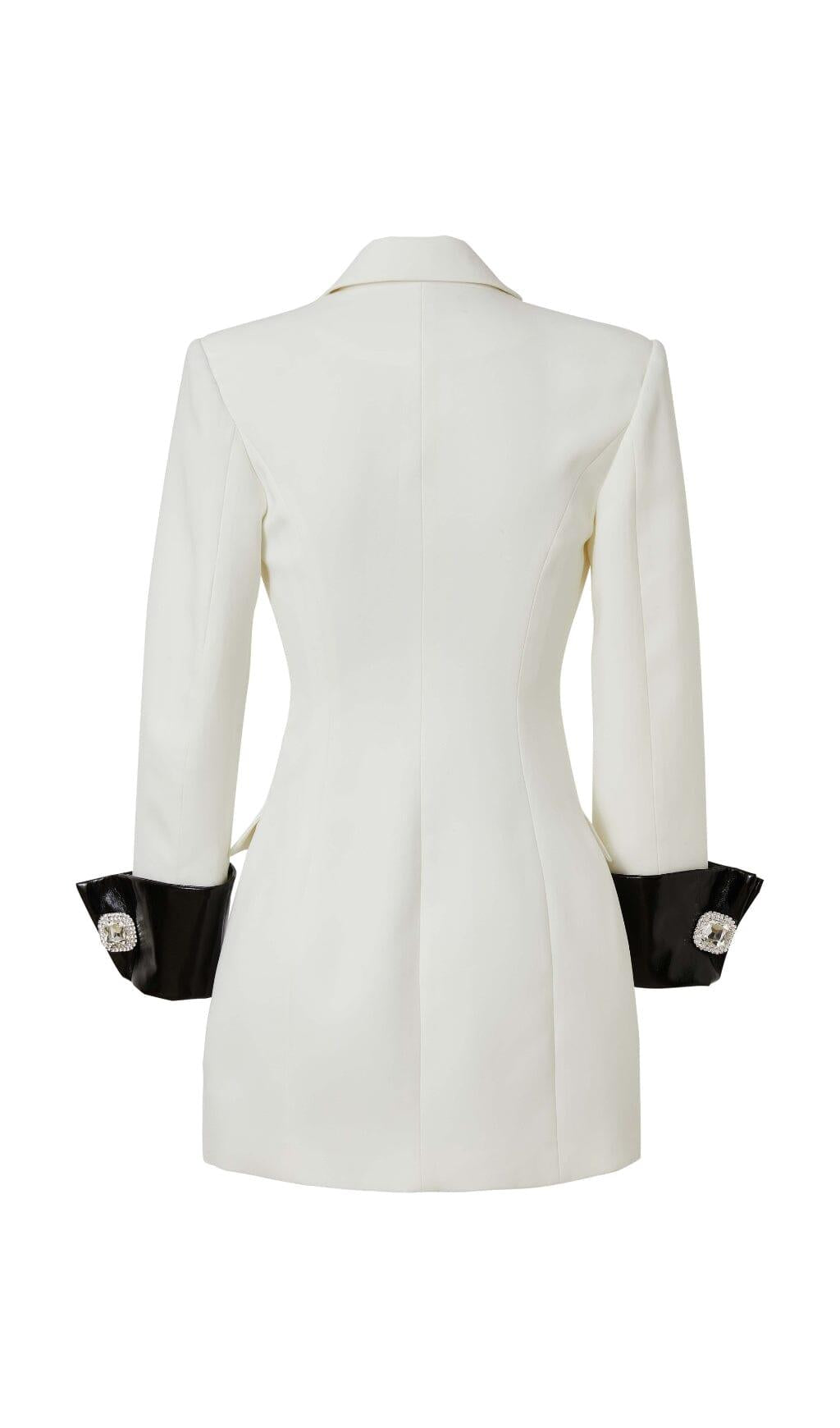DIAMOND BUTTON LEATHER PATCHWORK BLAZER