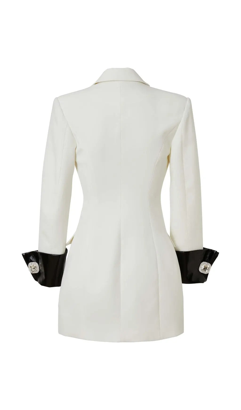 DIAMOND BUTTON LEATHER PATCHWORK BLAZE