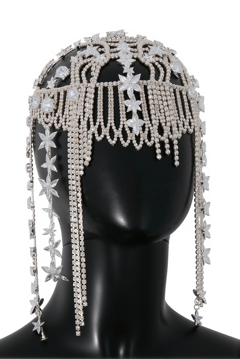 Make your fashion statement with this dazzling piece from Brinnan. Order now to experience the luxury of our Diamond Floral Fringe Hairband.