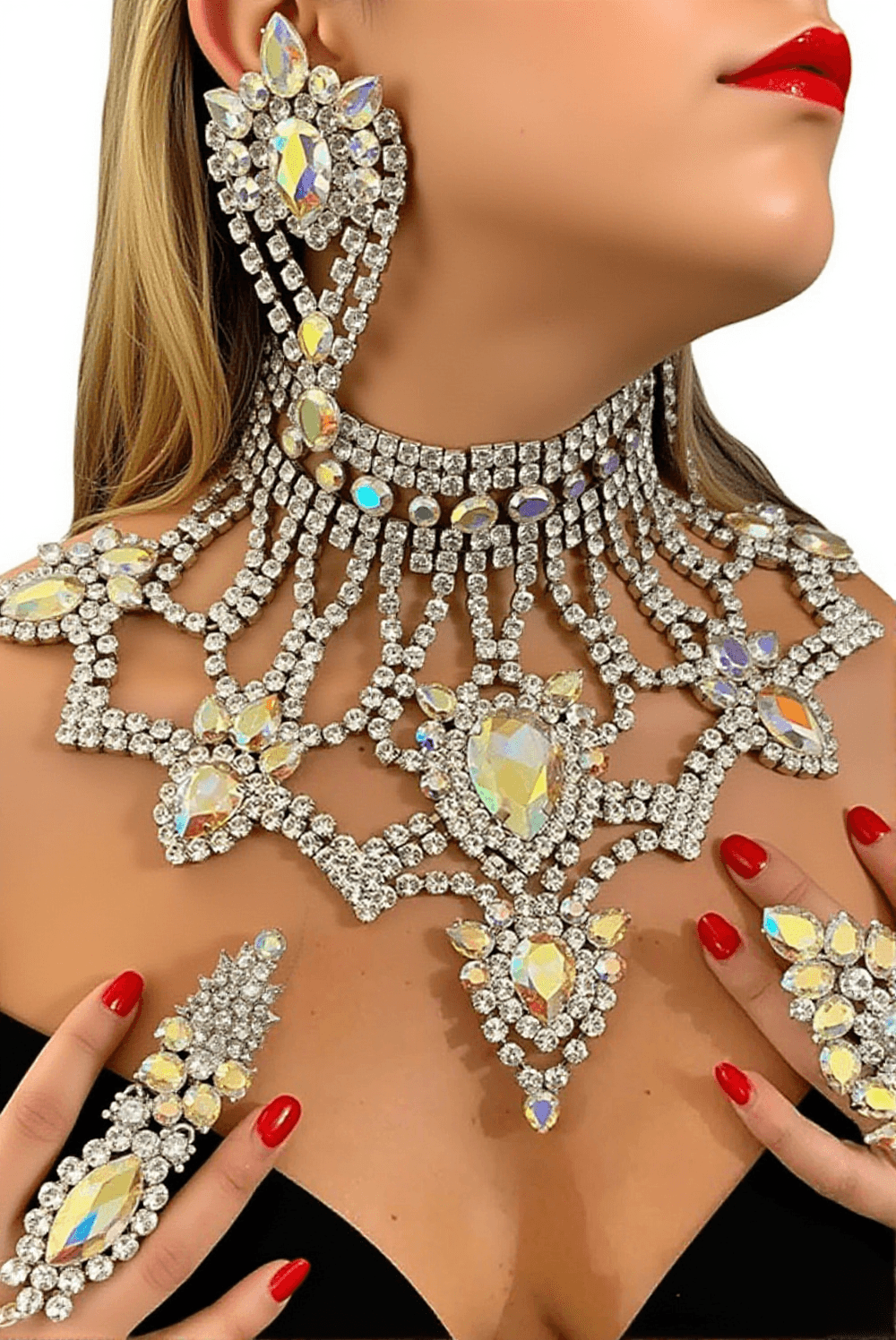 The shimmering water diamonds in this set reflect your inner radiance, ensuring that you shine with confidence and grace. It's the perfect choice to enhance your natural beauty and make a lasting impression wherever you go.