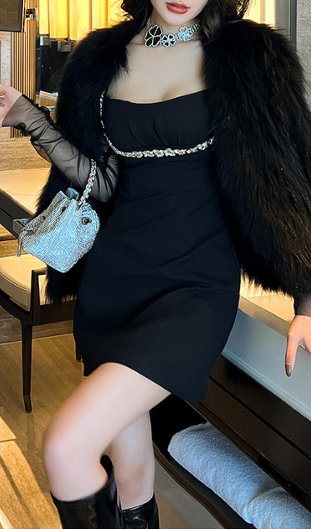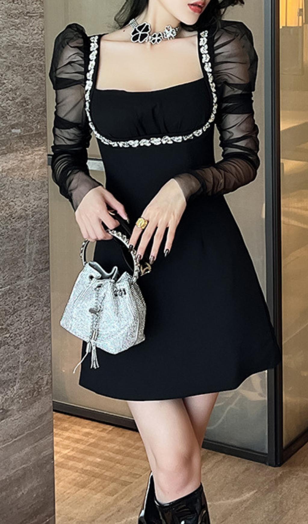 DIAMOND SQUARE NECK MINI DRESS IN BLACK