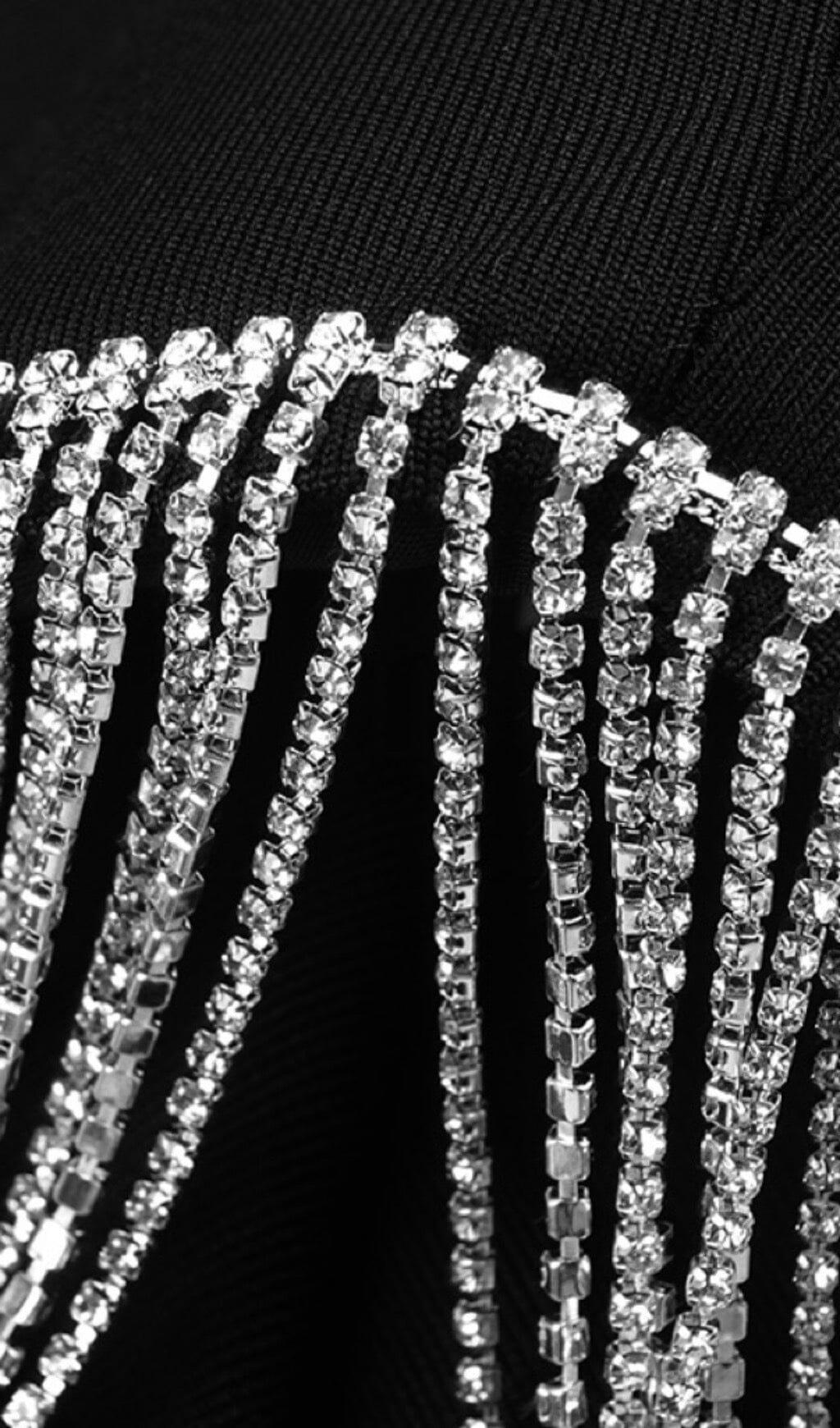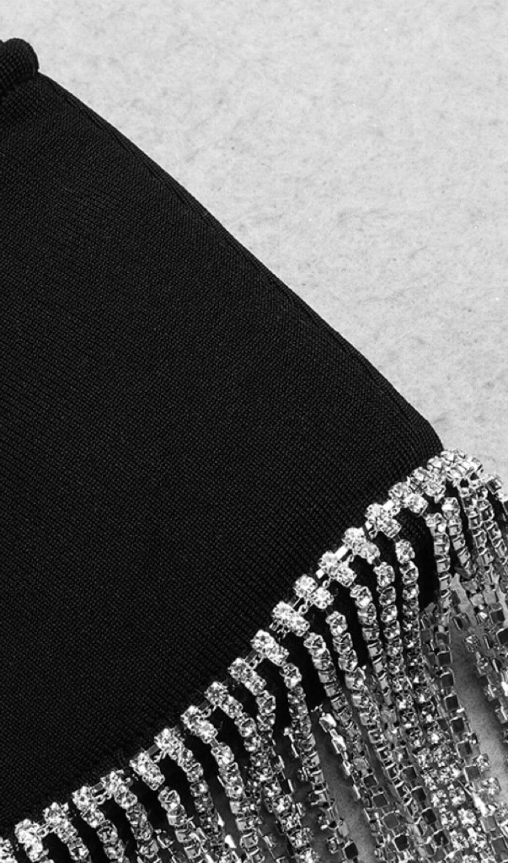 DIAMOND TASSEL KNITTED DRESS IN BLACK