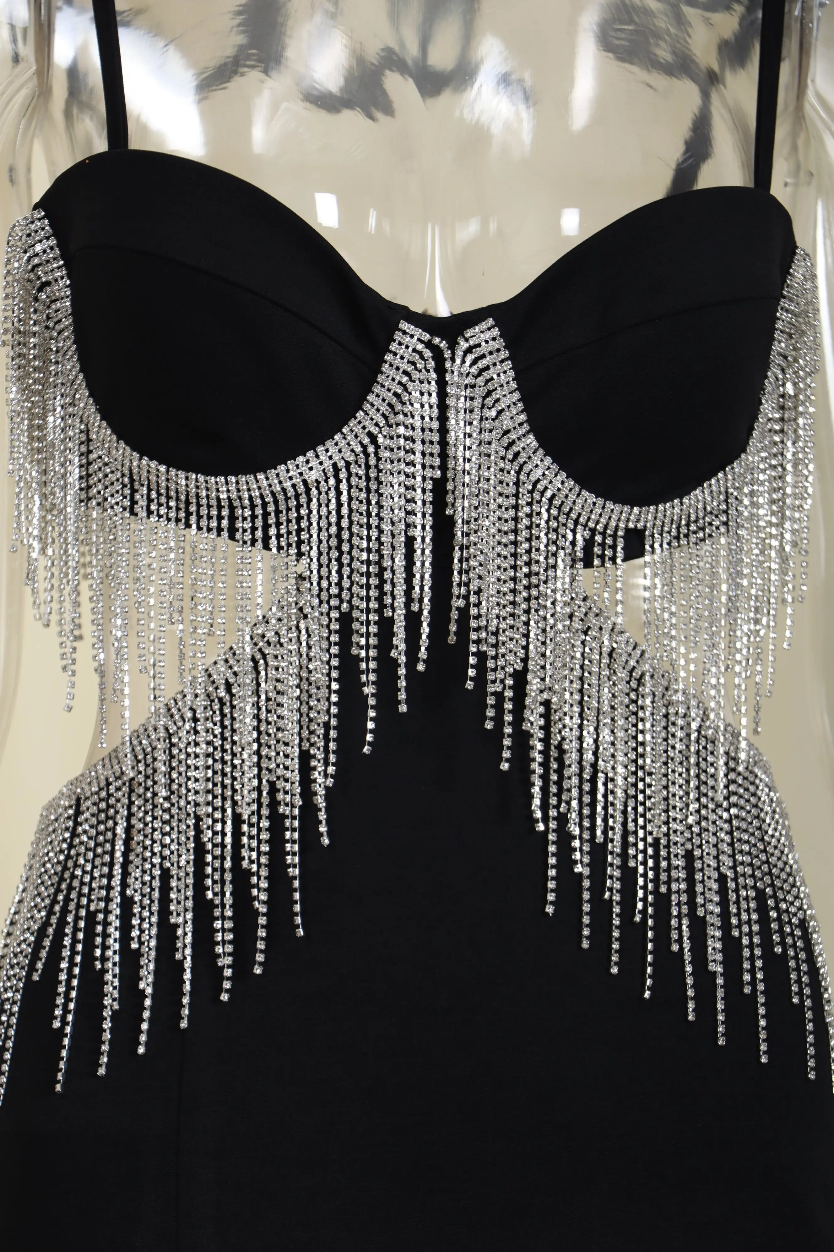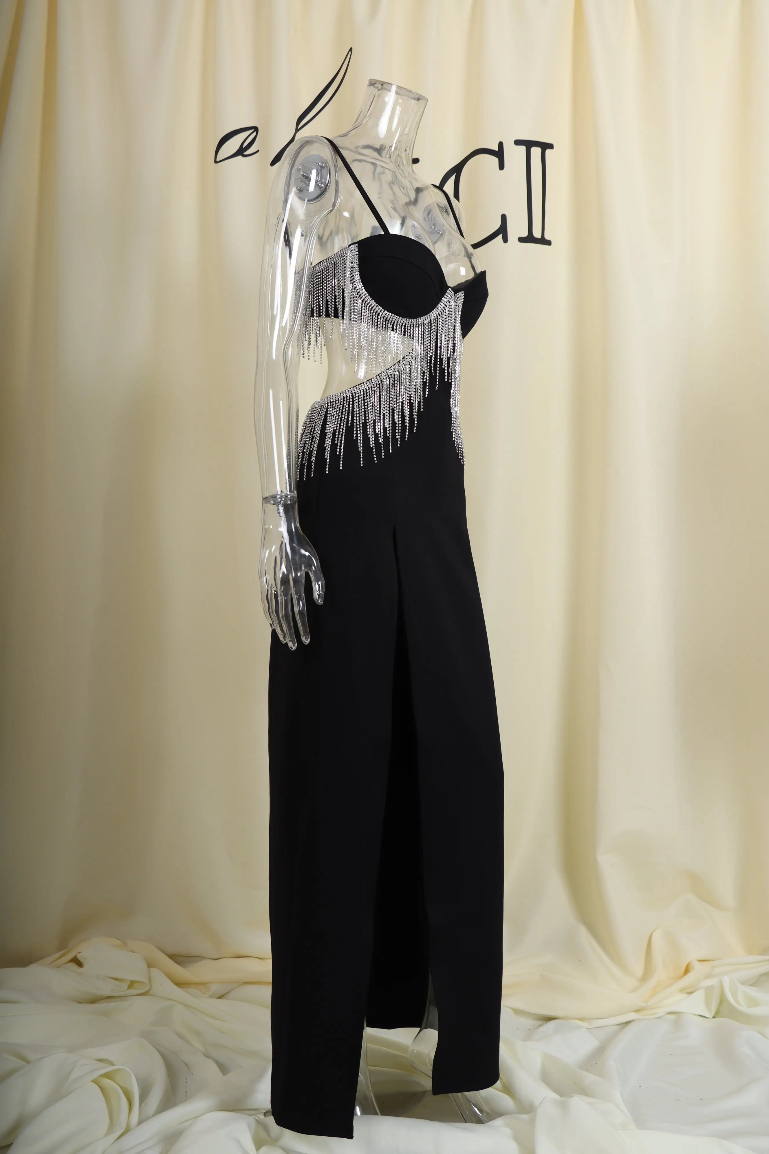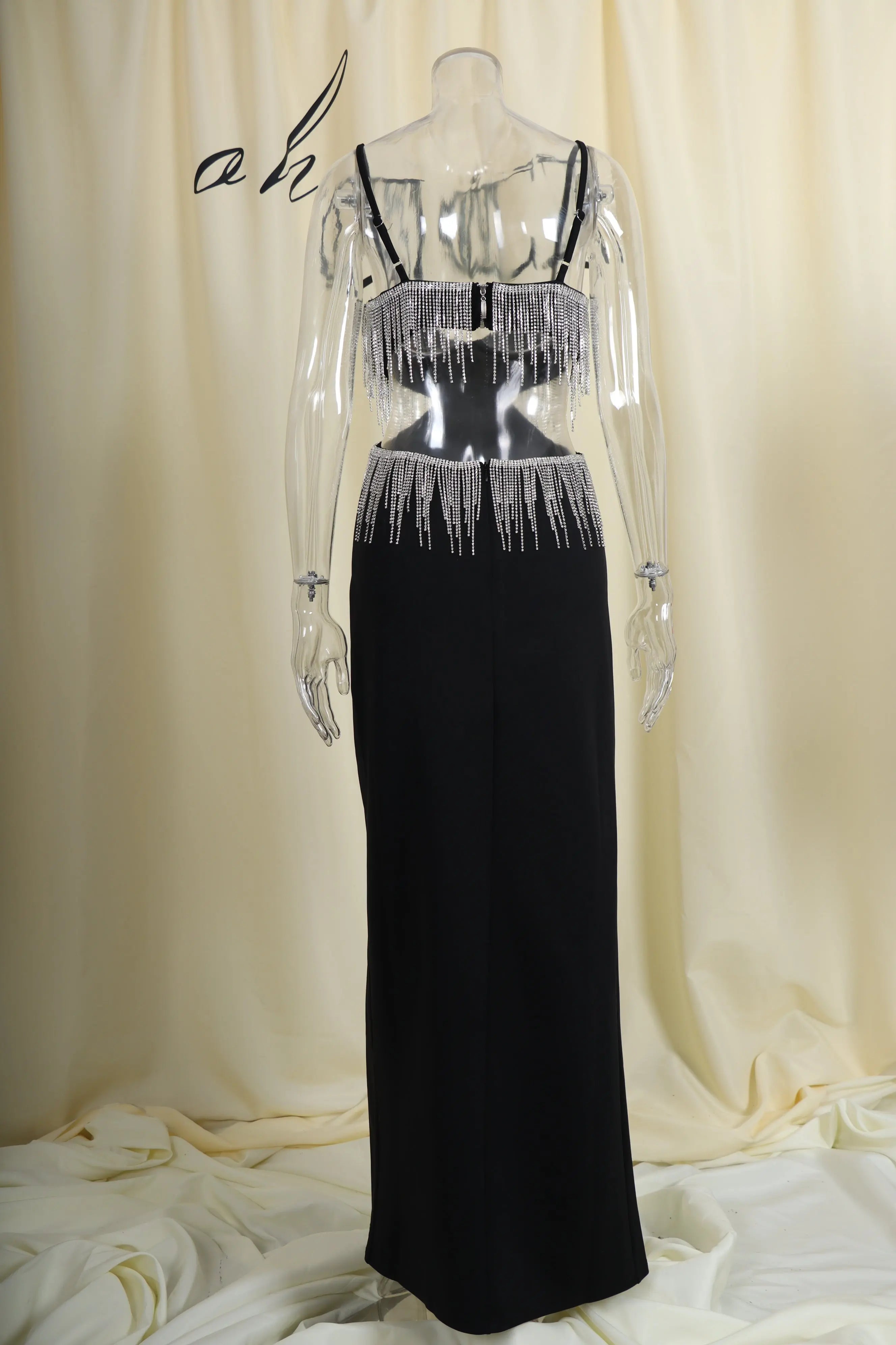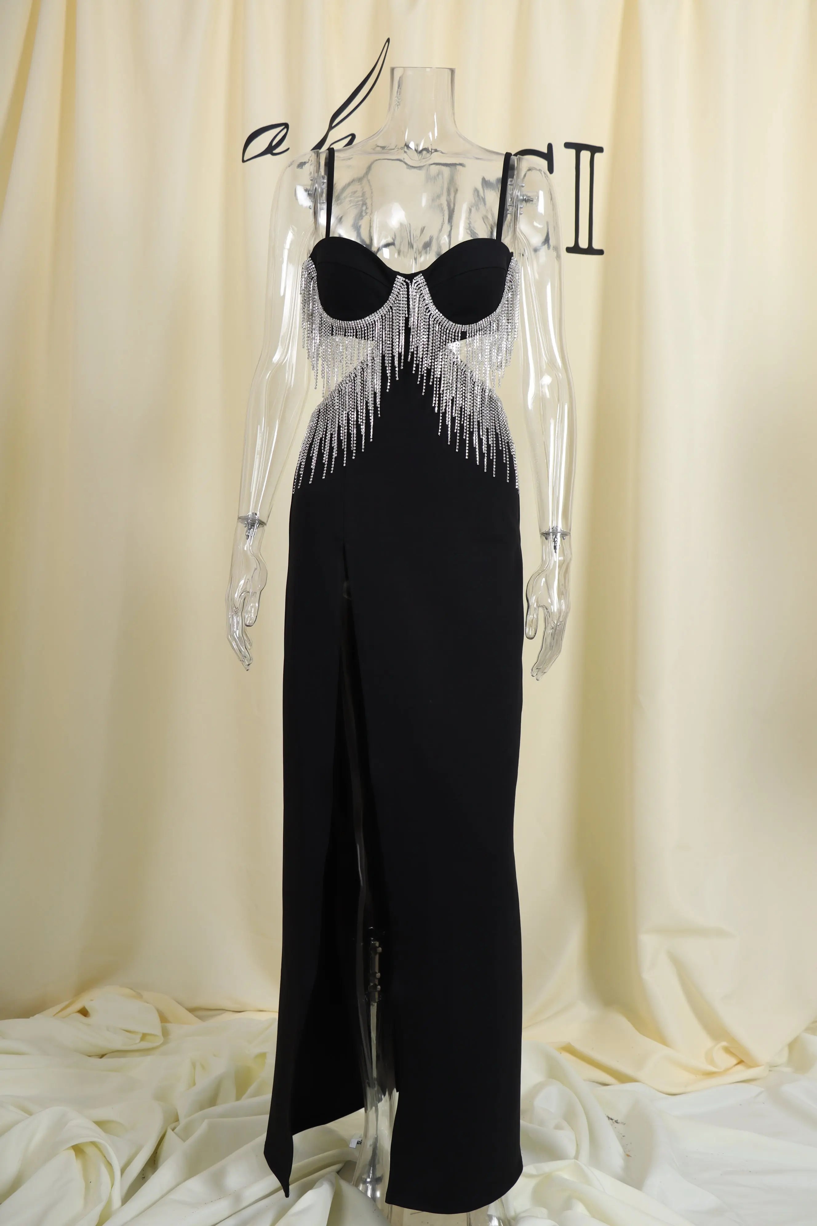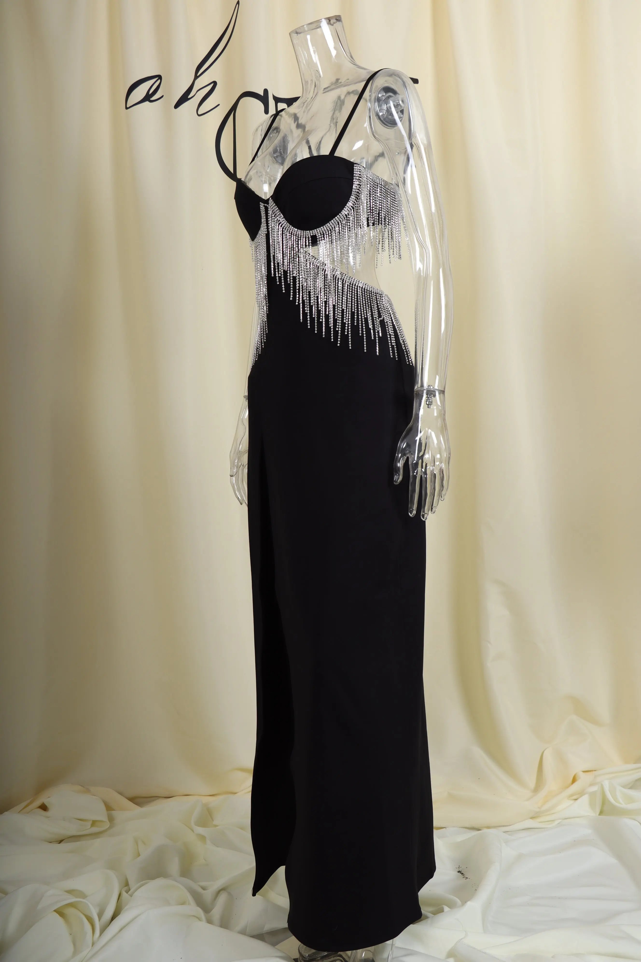 BLACK DIAMOND TASSEL SLIT MAXI DRESS