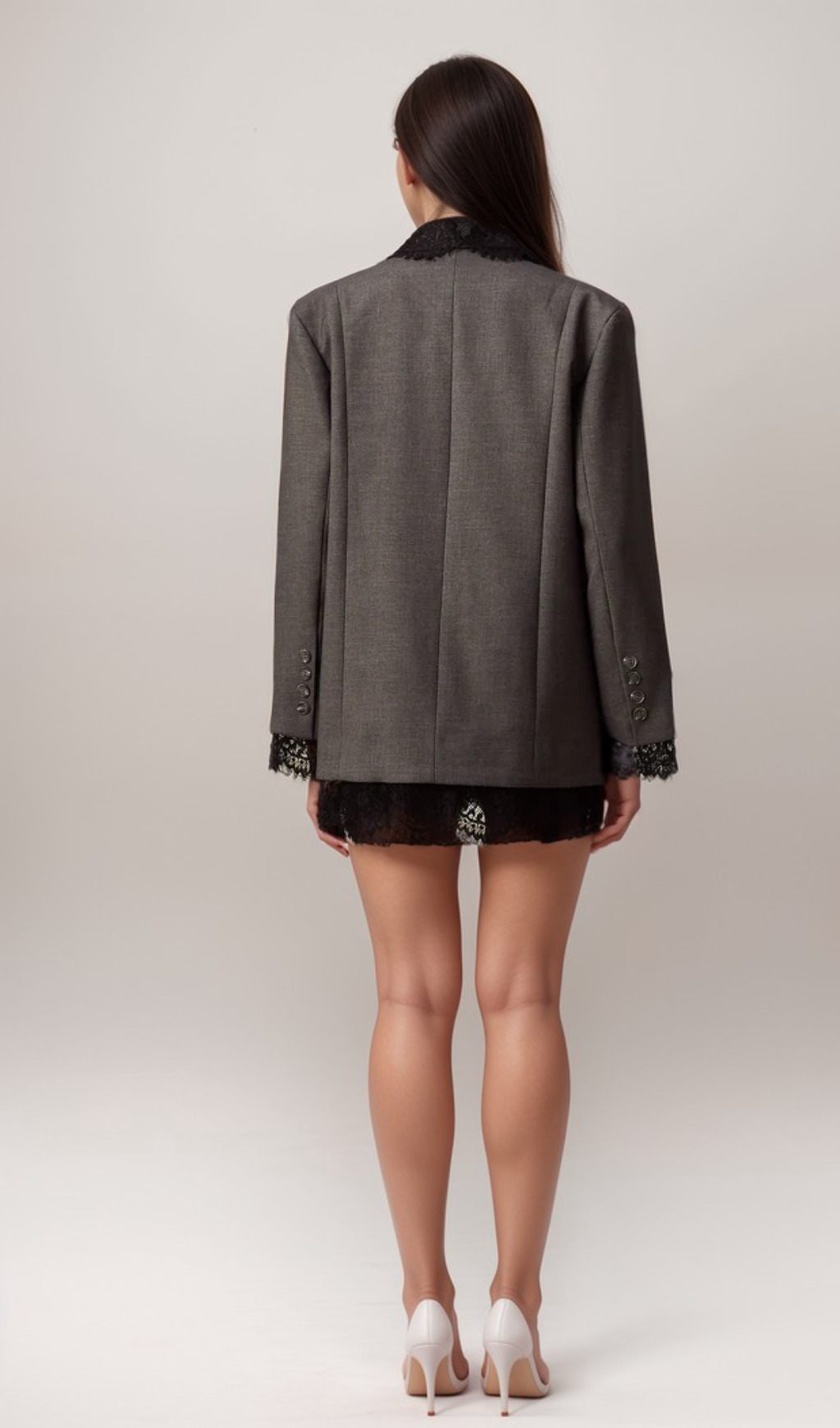Dianthe grey lace-panel blazer