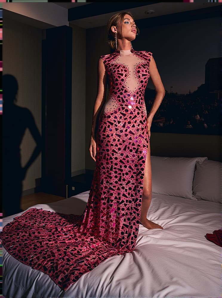 This Dolor Sleeves Embellished Maxi Dress With Gloves In Pink is perfect for making a bold statement. The sleeveless style is finished with unique embellishments, a sheer maxi silhouette, and matching gloves that provide an elegant touch of sophistication. Perfect for special occasions.